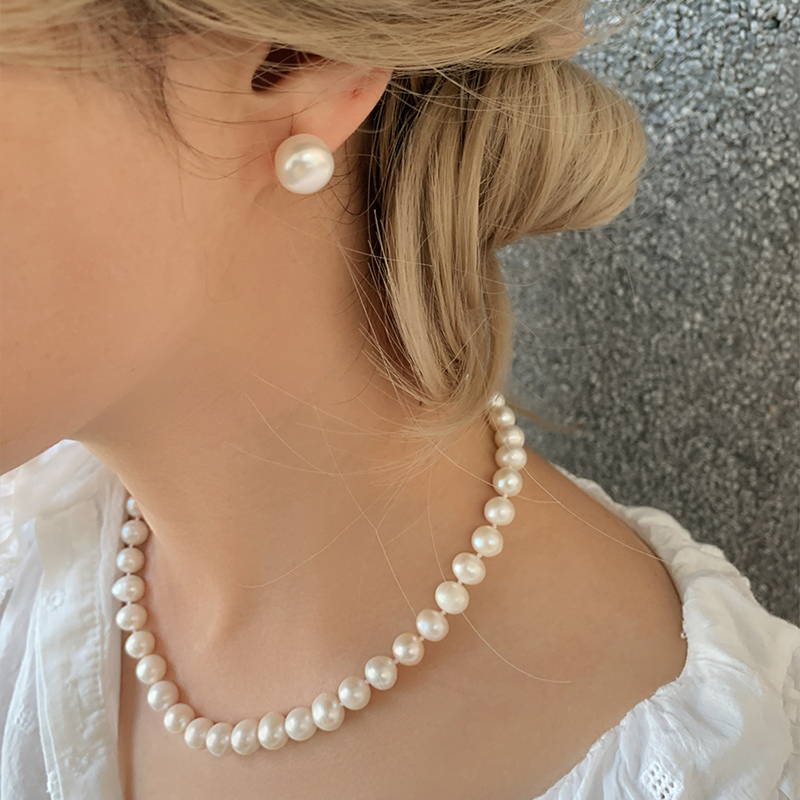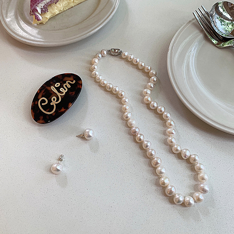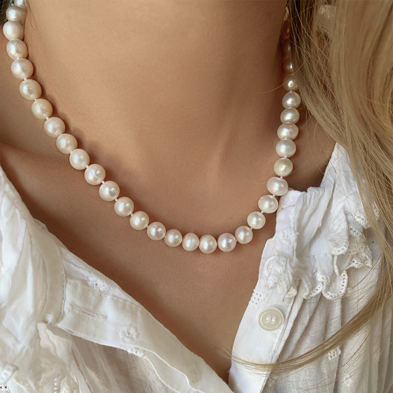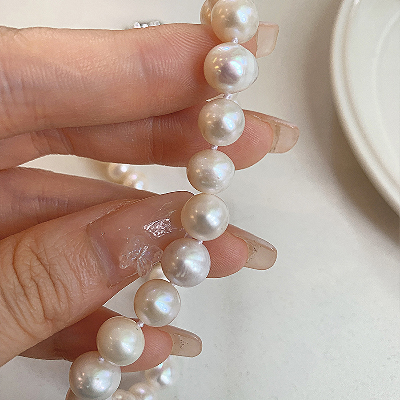 高品质近圆 淡水天然珍珠项链轻奢小众高级感简约锁骨链 纯银扣头