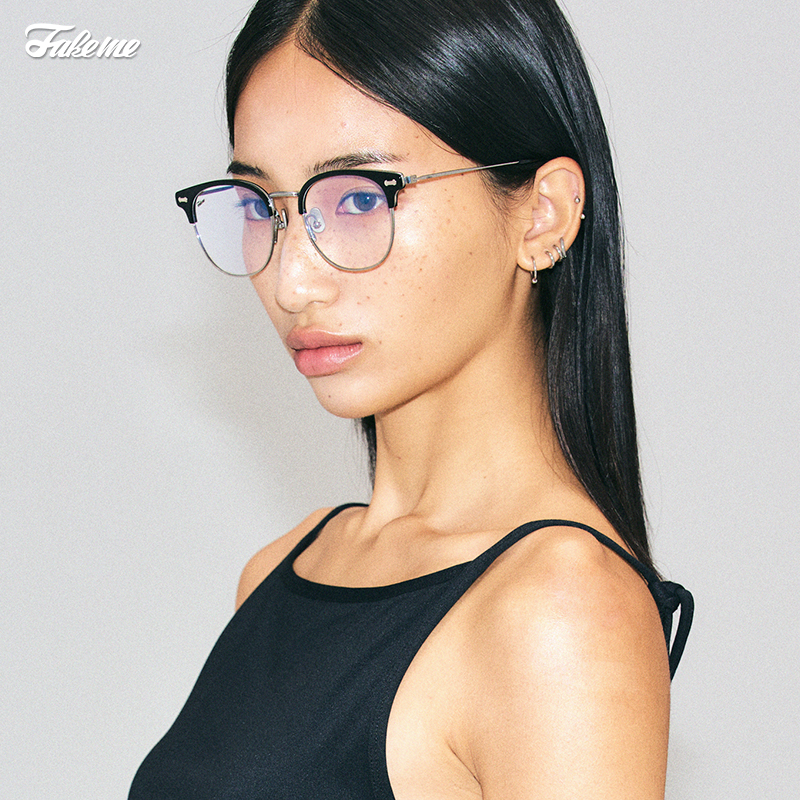 Fakeme 超轻眉毛素颜镜光学镜架拼接斯文极简ins风 slip