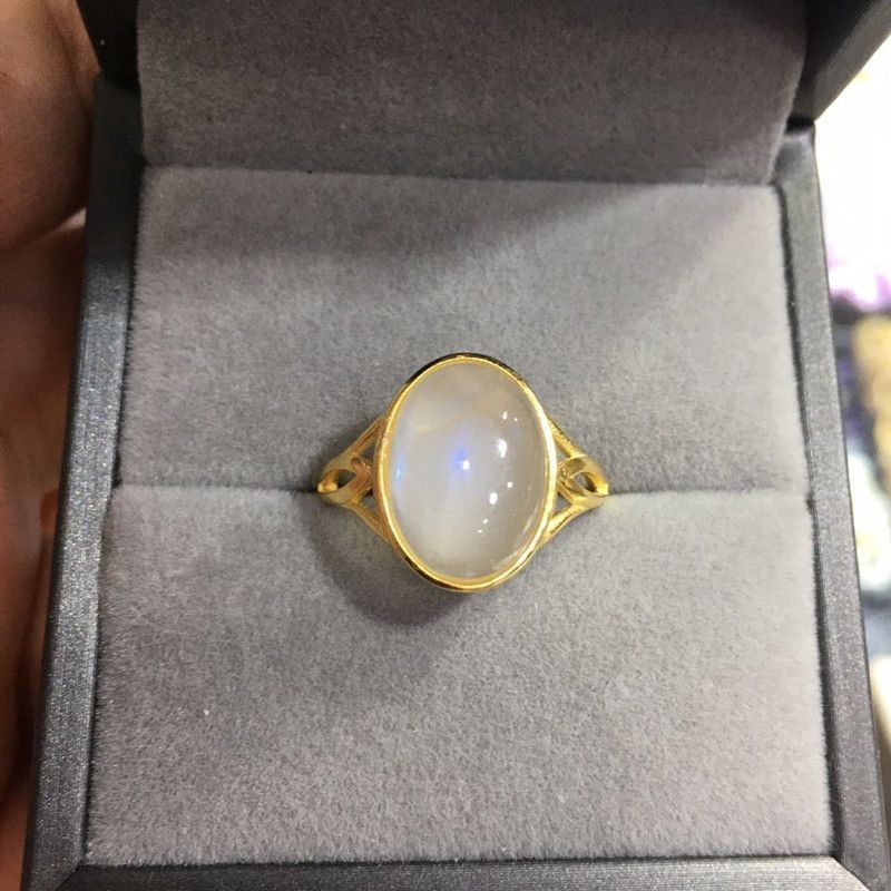 古法金故宫和田玉蛋面戒指简约个性几何圆形气质女士开口可调节