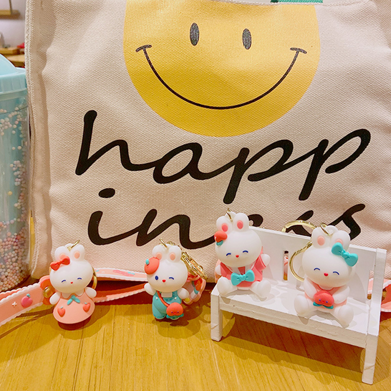 桃子兔可爱卡通钥匙扣情侣挂件书包挂饰钥匙链兔年兔子钥匙扣