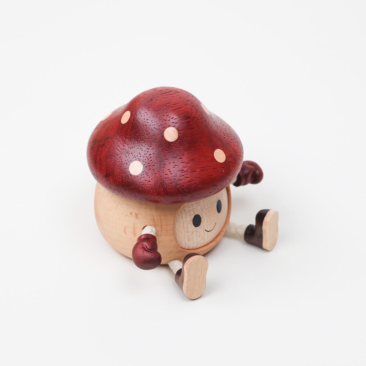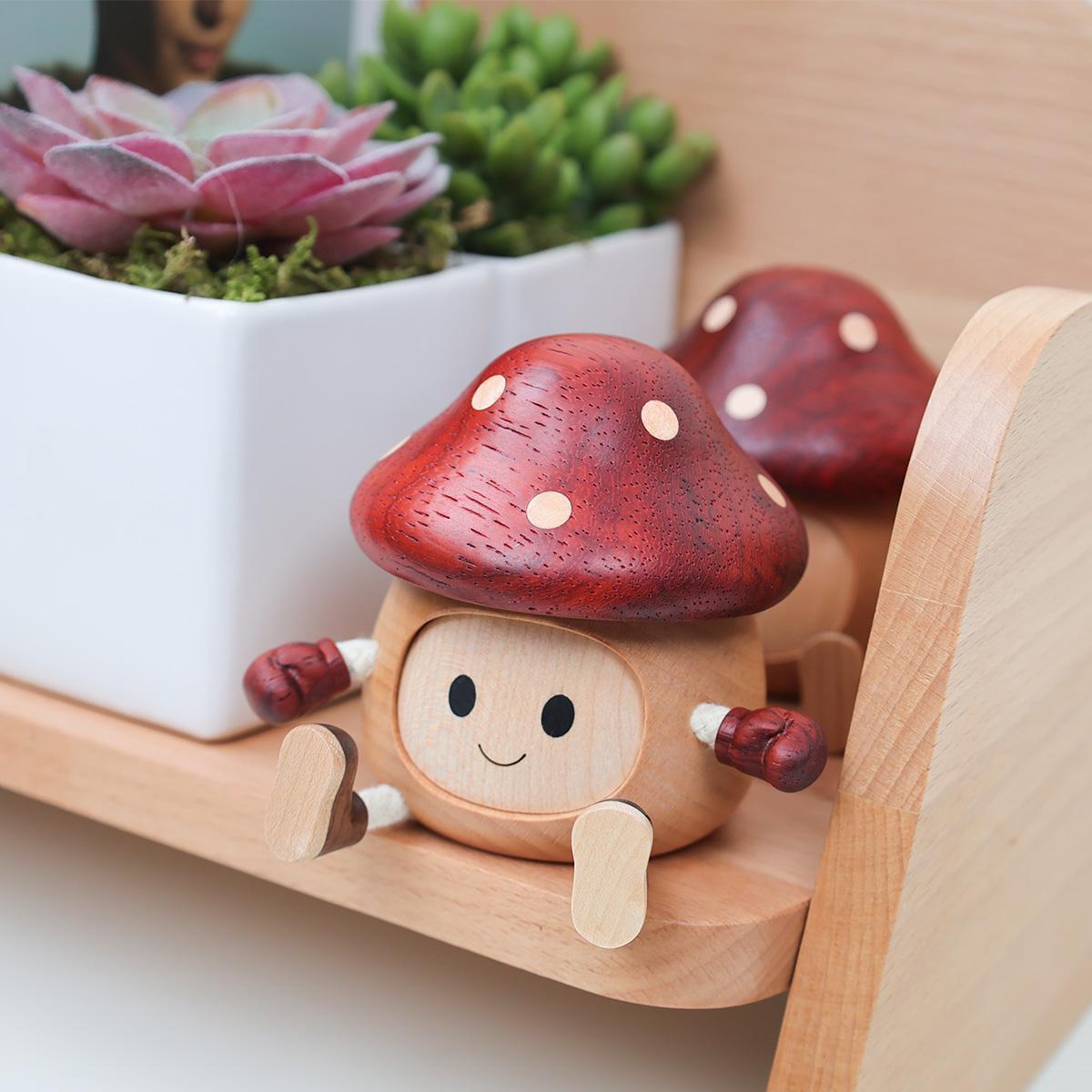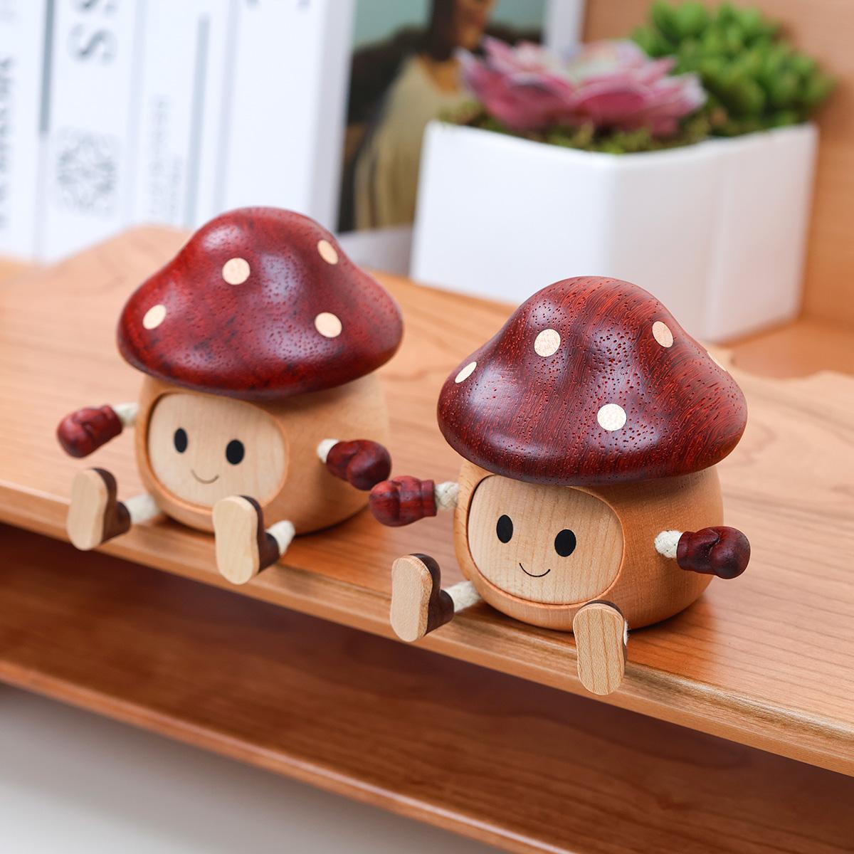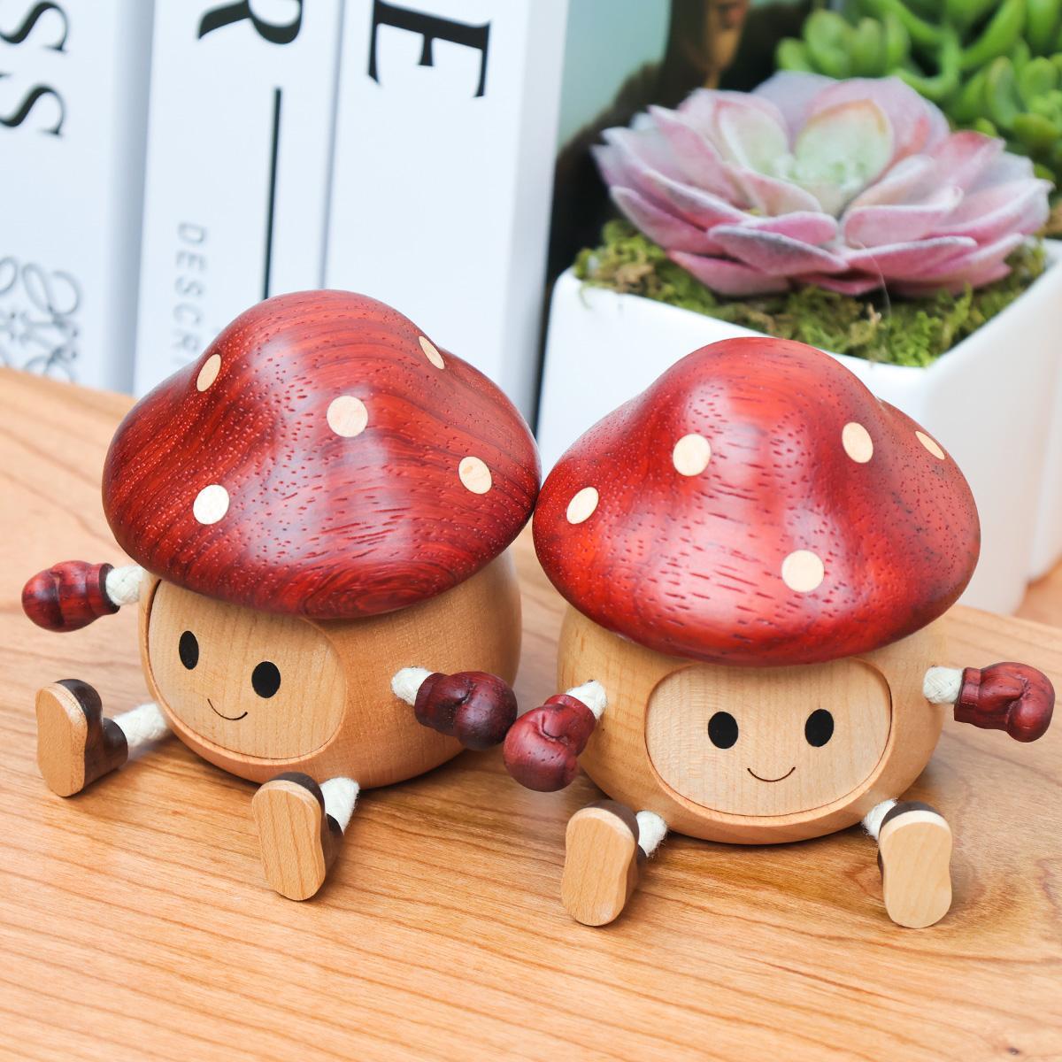 实木蘑菇小木偶摆件创意可爱治愈系桌面装饰品戒指盒收纳盒送女友