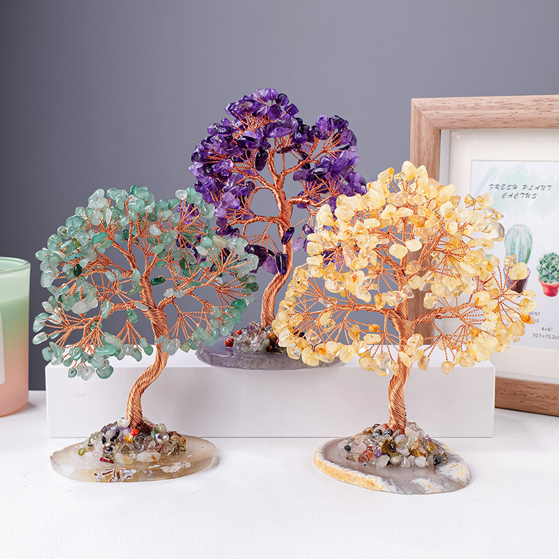 新品天然黄水晶发财树招财猫摆件家居桌面摆饰开业乔迁贺礼品礼物