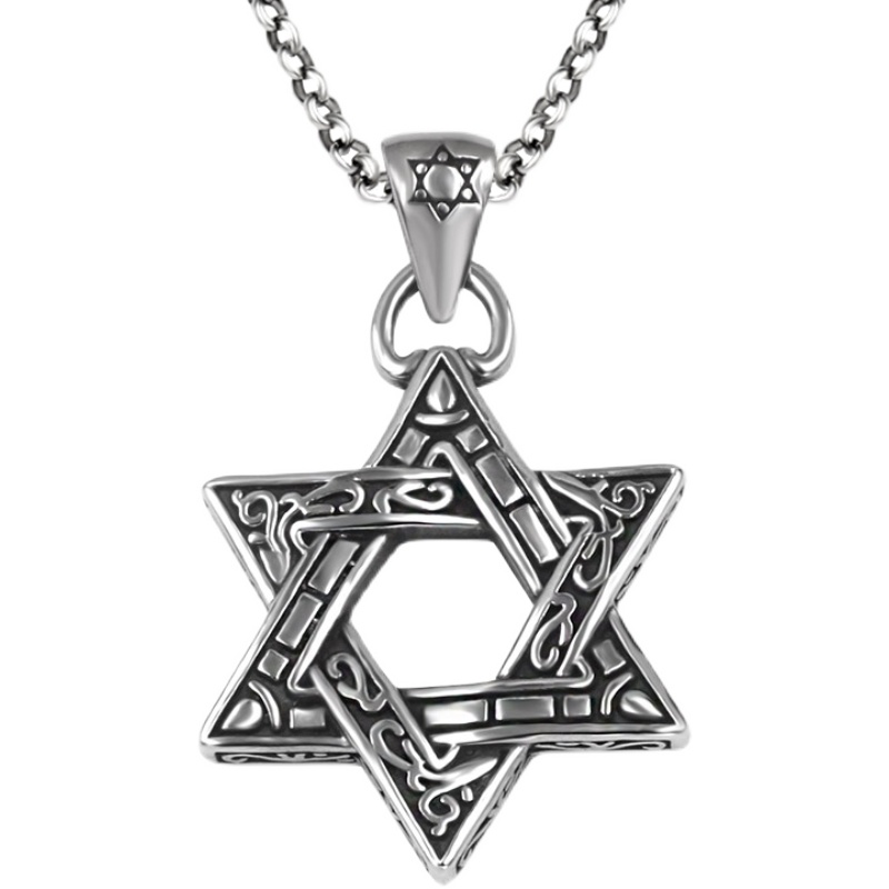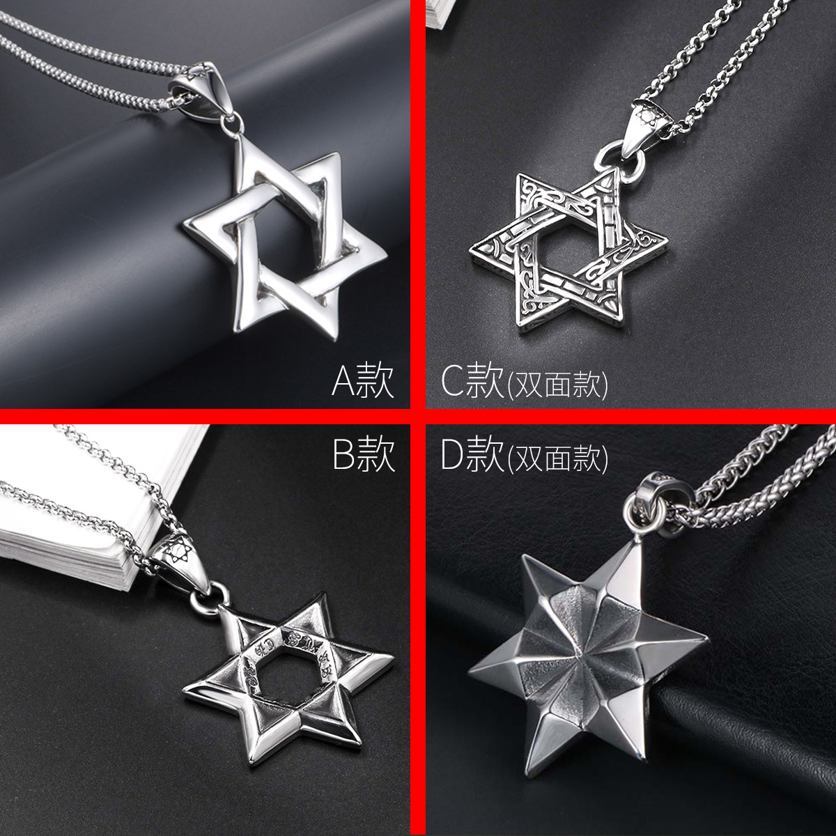 AH7钛钢六芒星花纹吊坠项链潮流男款立体双面复古项饰品潮人挂件