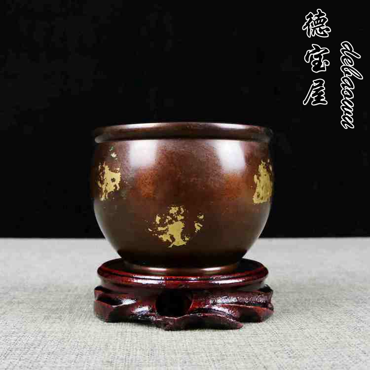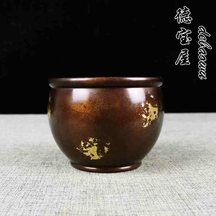 缸纯铜缸复古小水缸黄铜缸风水摆件家用办公室烟灰缸家居