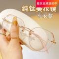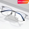 配无框近视眼镜男镶边纯钛实体新款成品可配有度数超轻变色近视镜