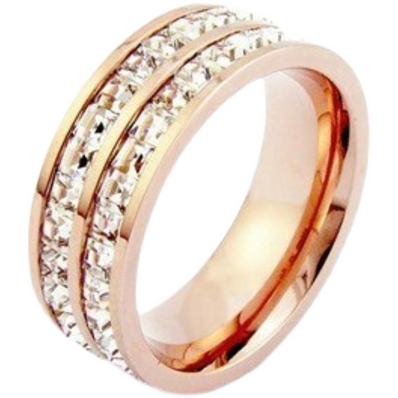 大码大号情侣女戒指食指中指玫瑰金单排钻双排简约钛钢镶钻粗手