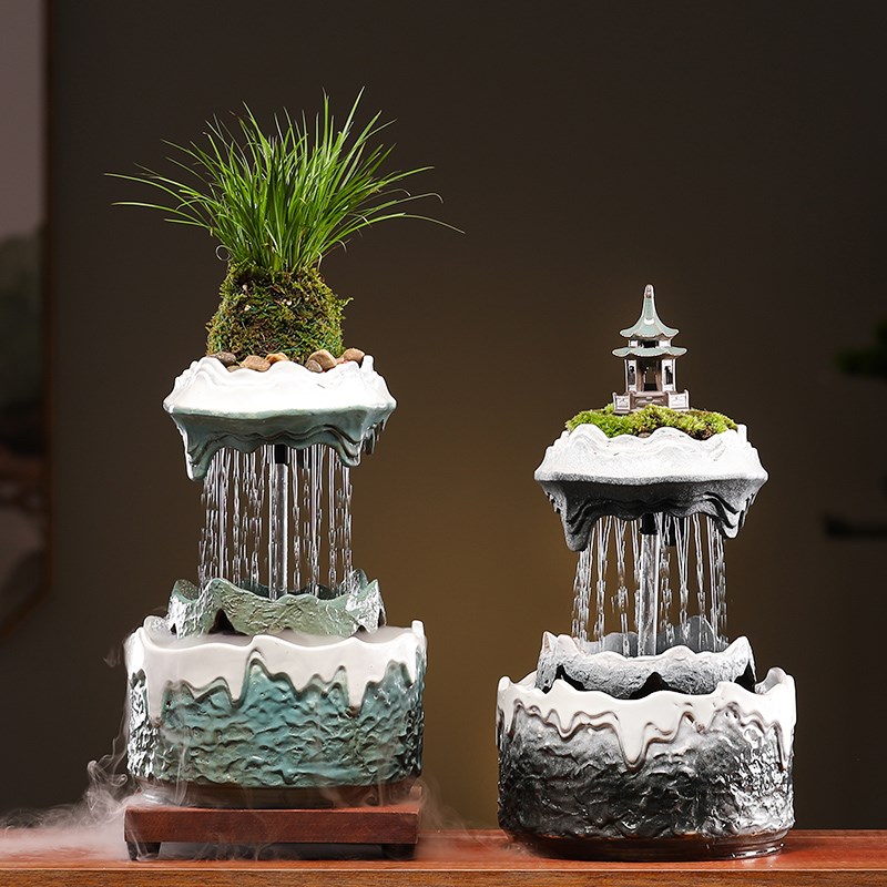 流水摆件循环水轻奢生财客厅茶台招财假山喷泉现代玄关桌面装饰品