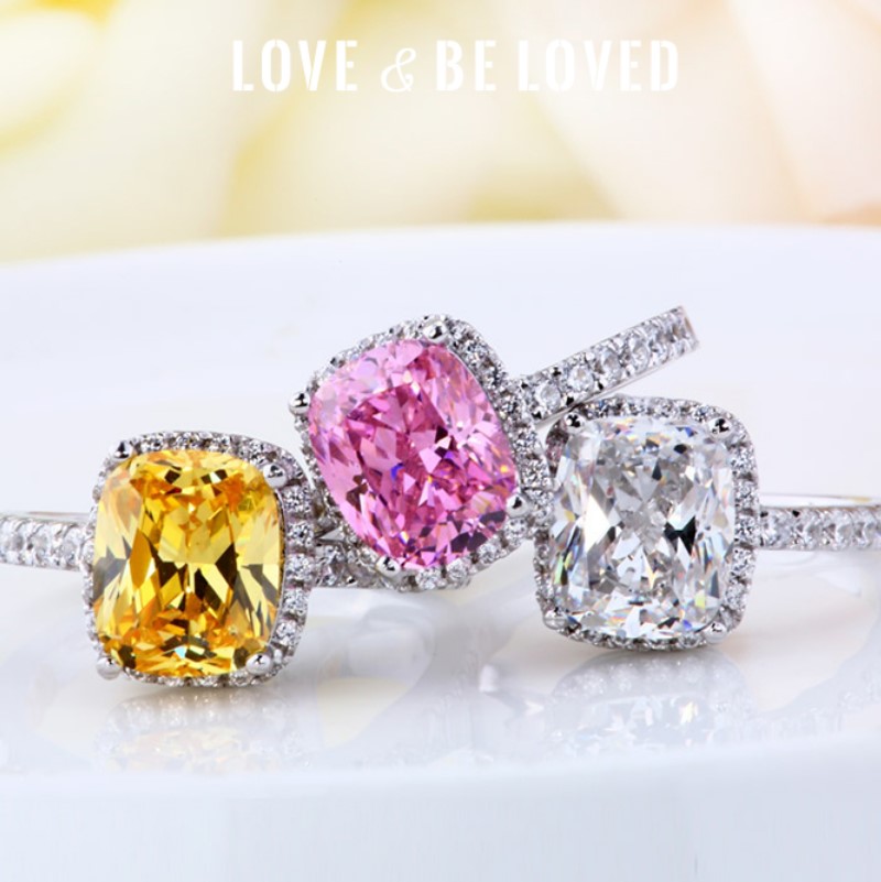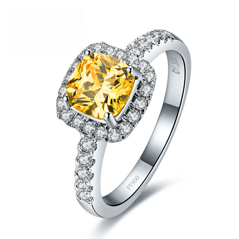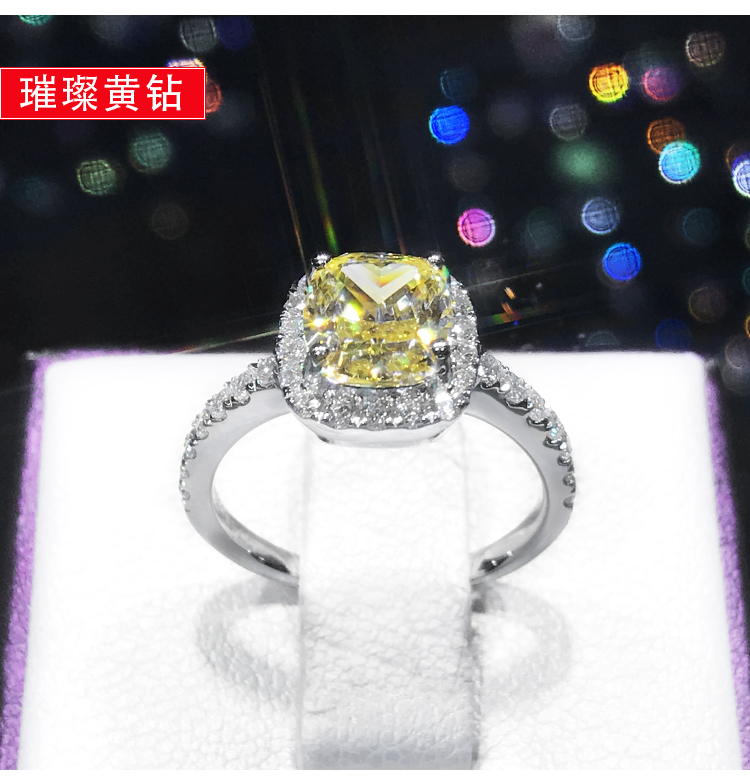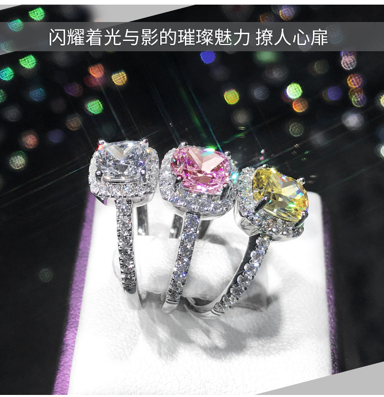 18k金莫桑石戒指铂金公主方钻戒女莫桑 1克拉仿真钻石求婚结婚戒