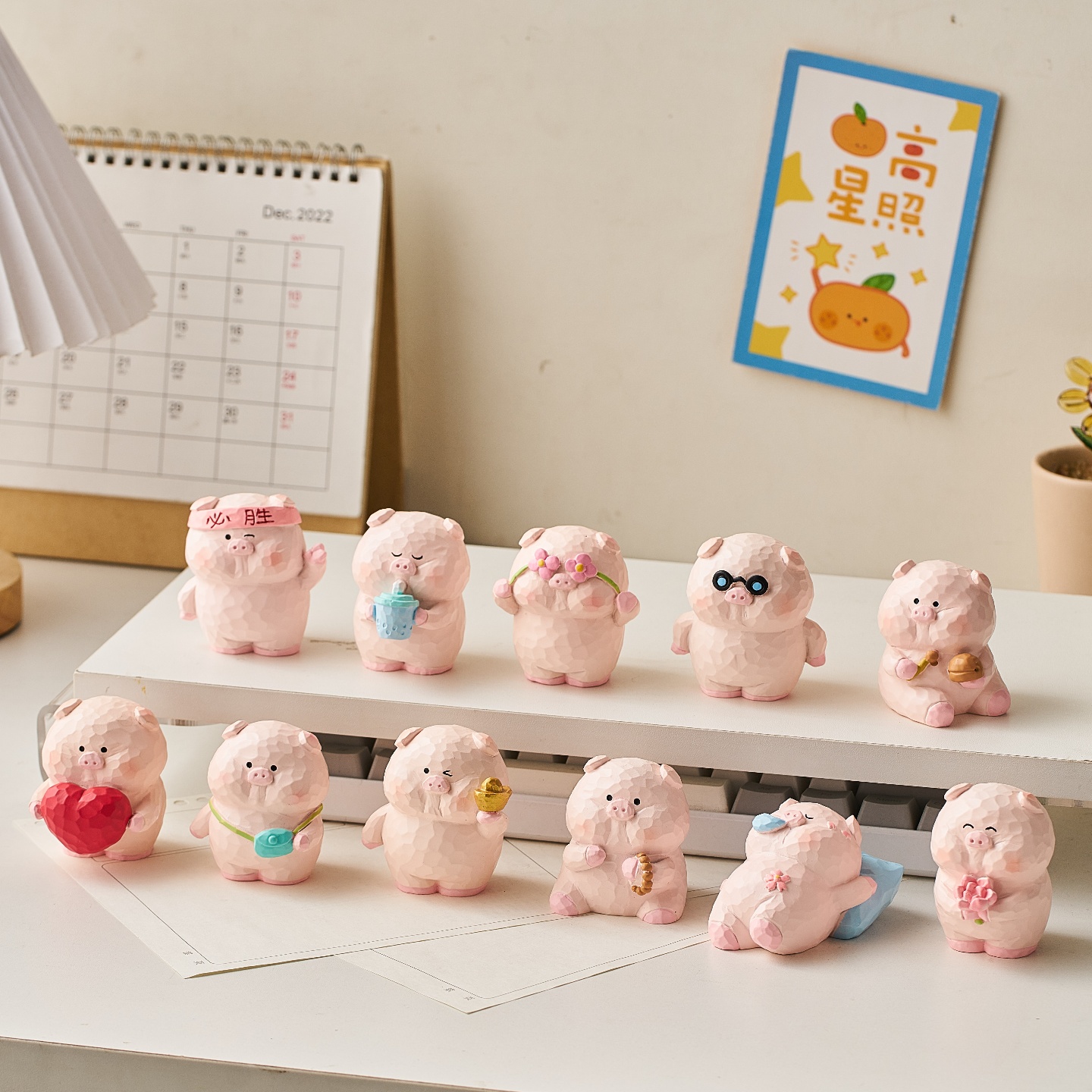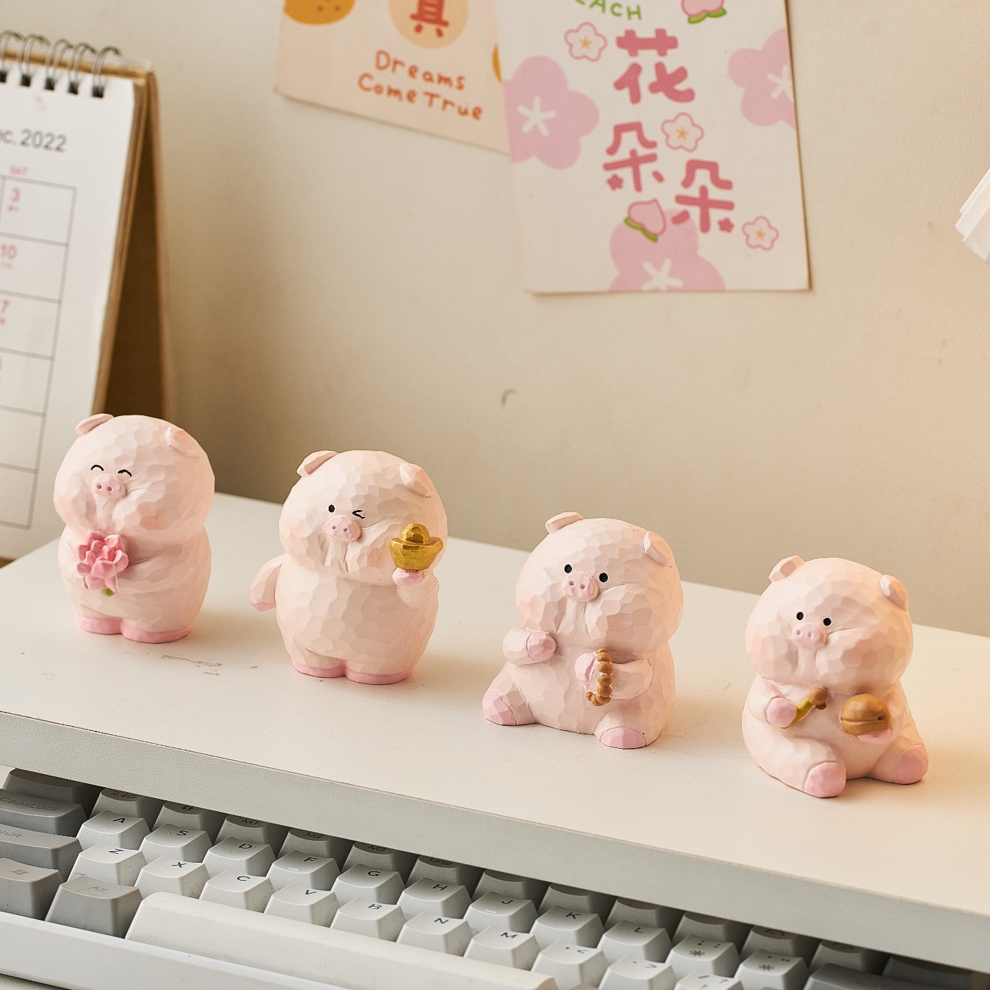 可爱卡通小猪摆件办公室工位桌面装饰品玩偶情绪稳定打工人送女生