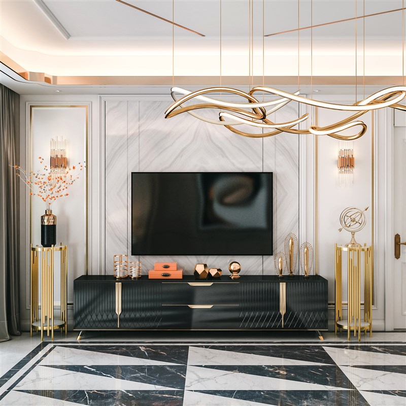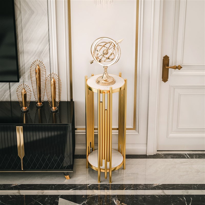 轻奢客厅落地摆件装饰架电视柜旁边大型沙发大理石花架