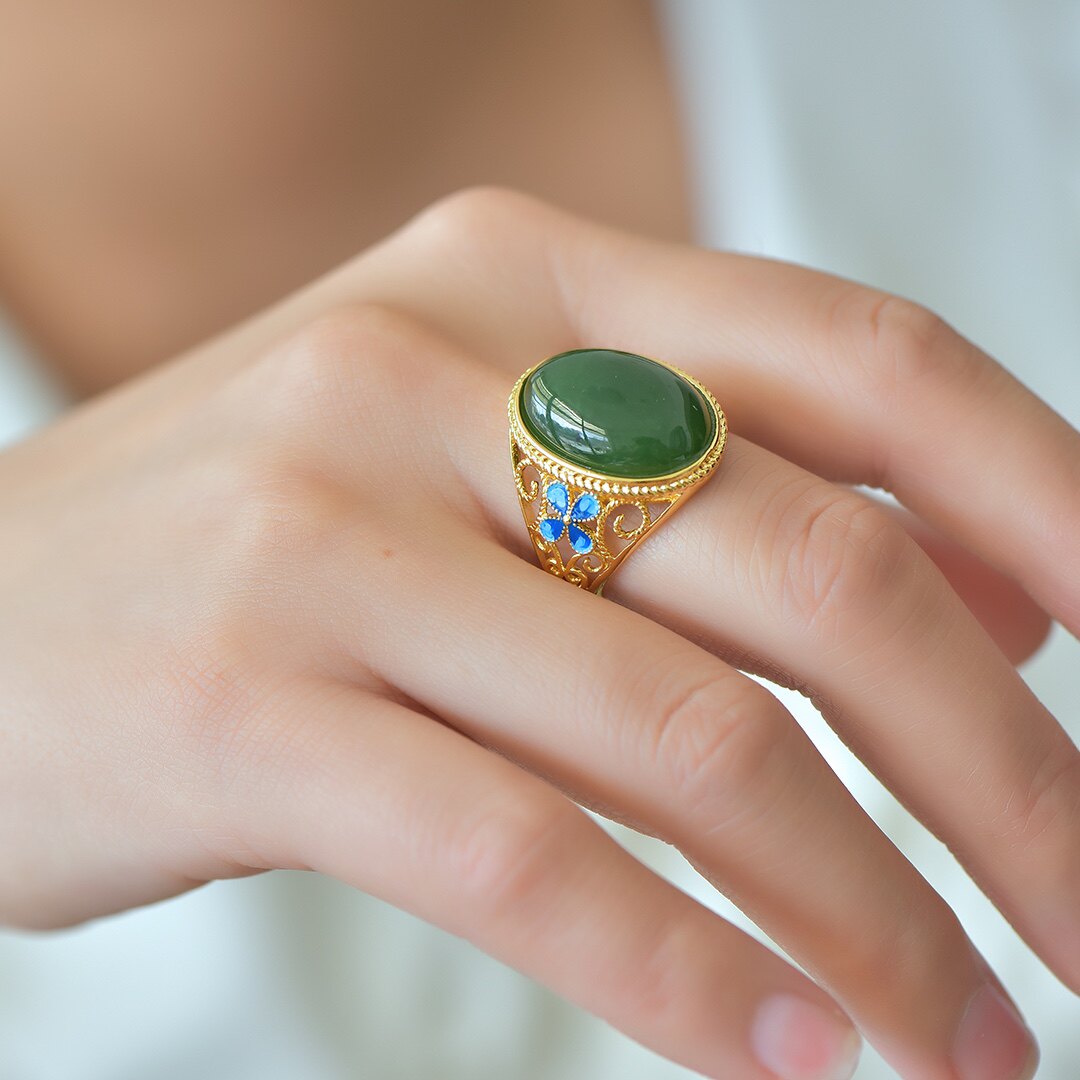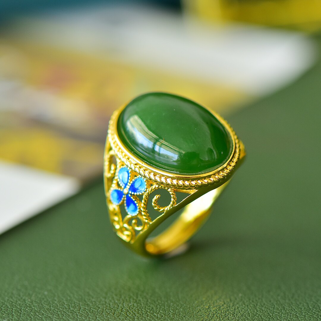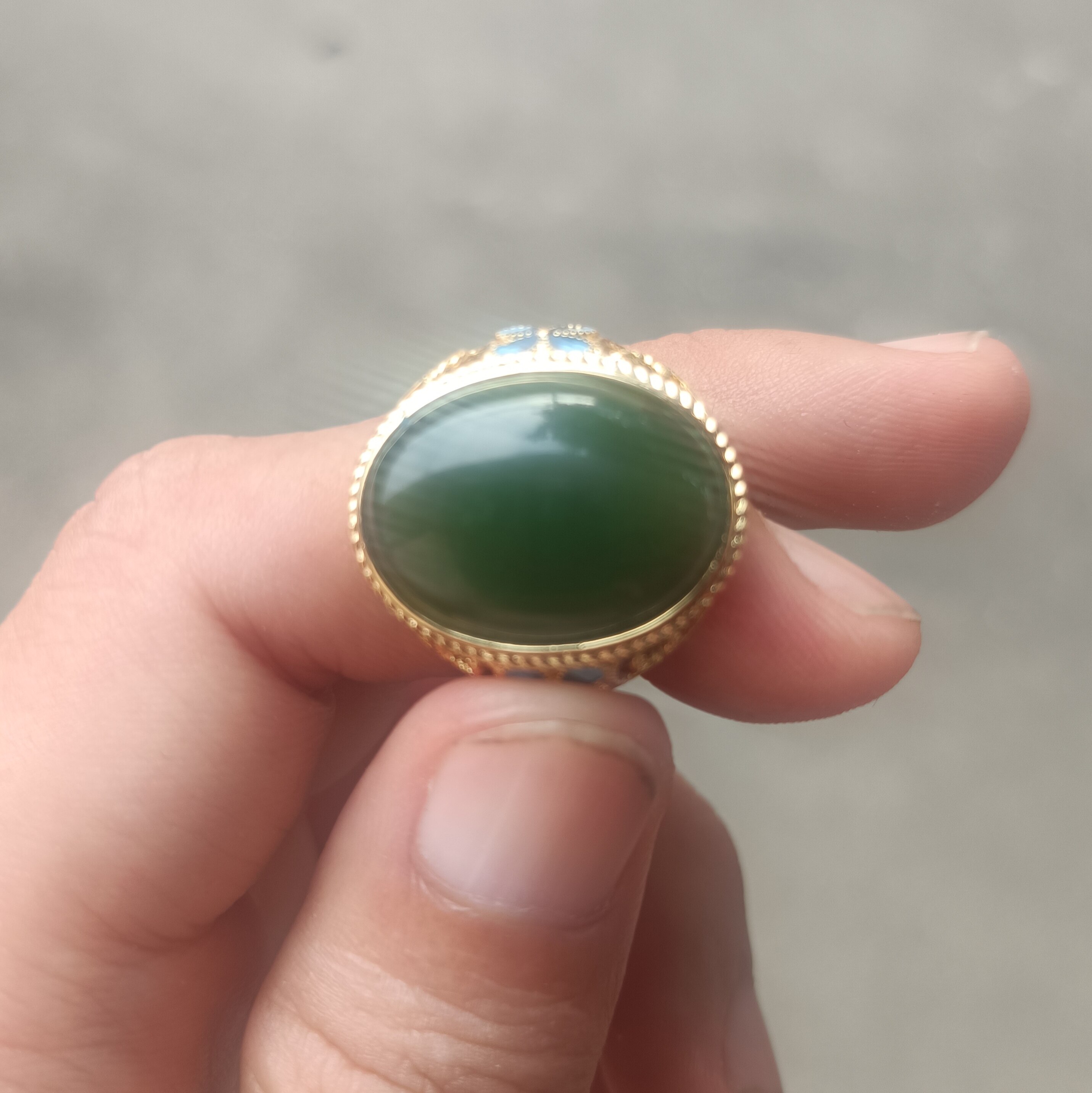 和田玉碧玉戒指女俄料菠菜绿奢华大气高级感食指戒开口不掉色