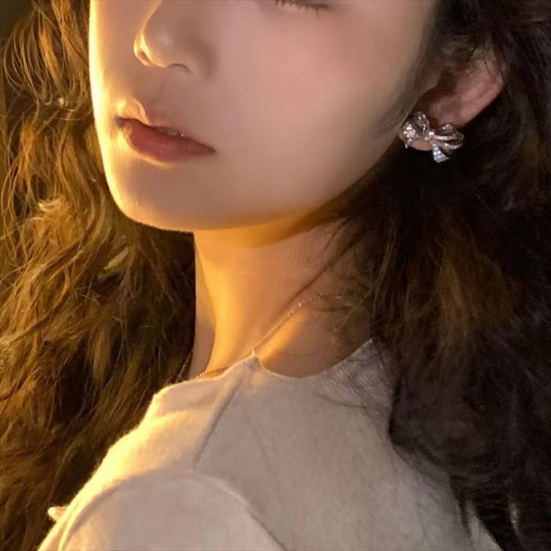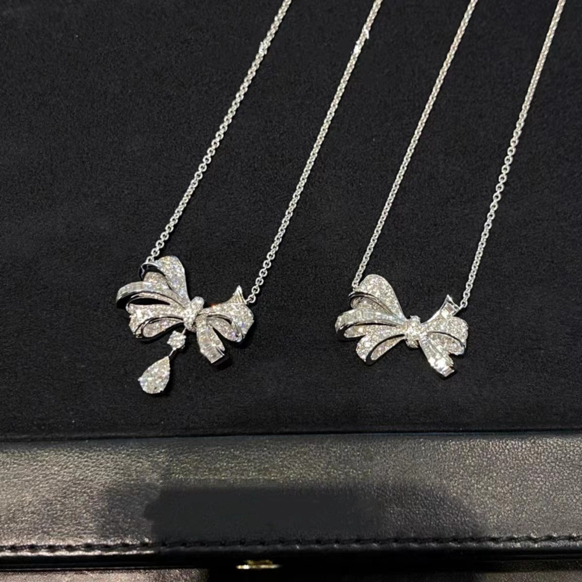 PT950纯铂金进口D色莫桑石蝴蝶结锁骨链简约满钻项链耳钉潮流气质