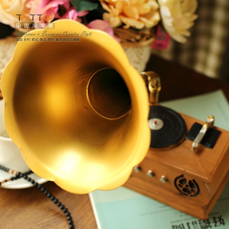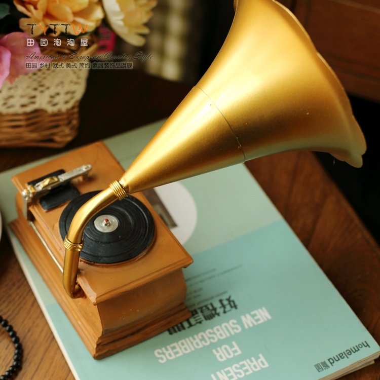 简约欧式复古唱片机 酒吧家居工艺品摆件咖啡厅装饰品留声机模型