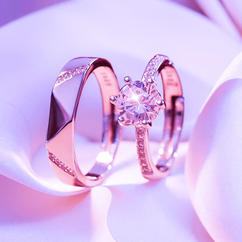 仿真假钻戒结婚对戒活口可调节戒指求婚女男礼仪式用道具一对情侣