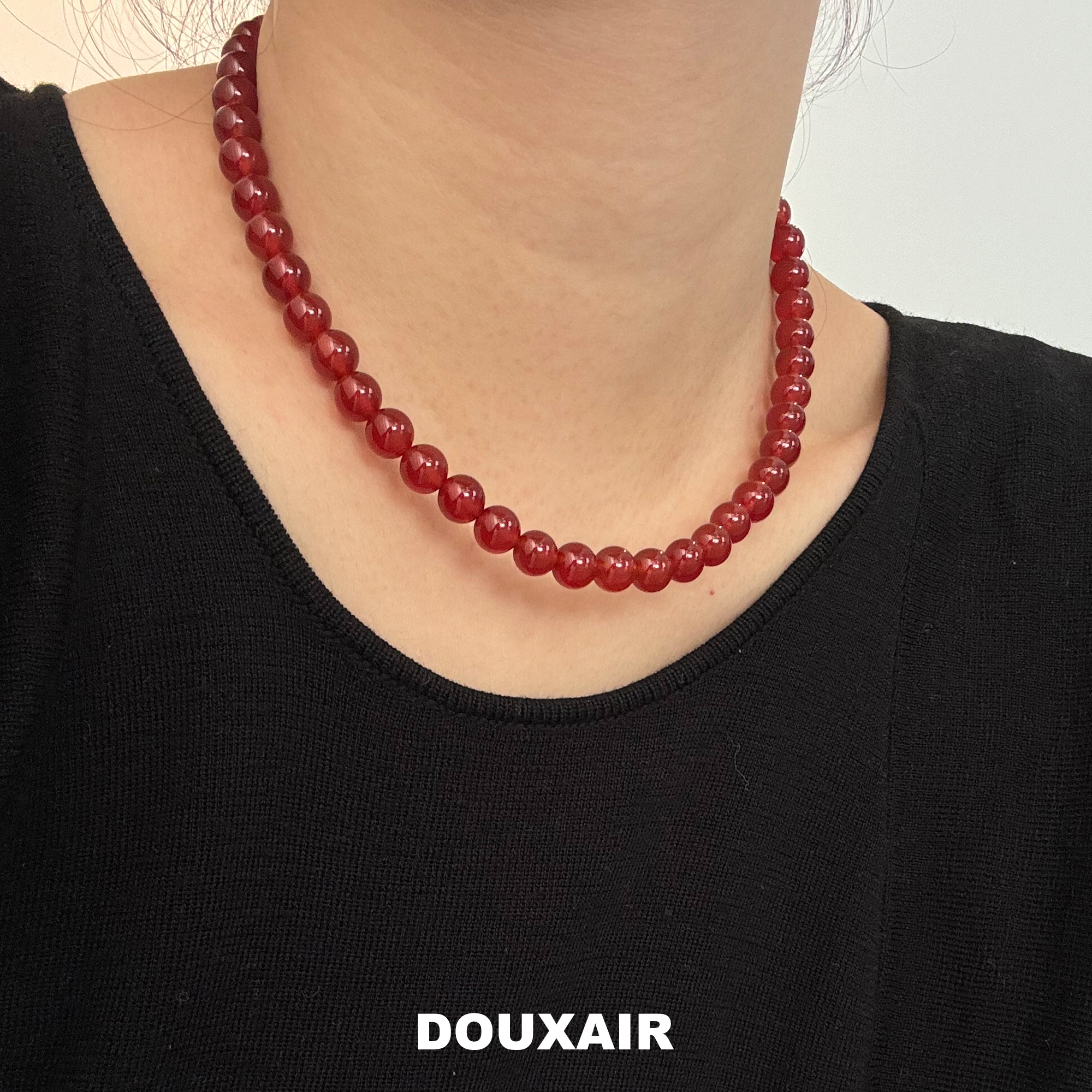 天然绿玉髓翡翠色系项链红玛瑙黑玉石串珠锁骨链小众高级感素链女