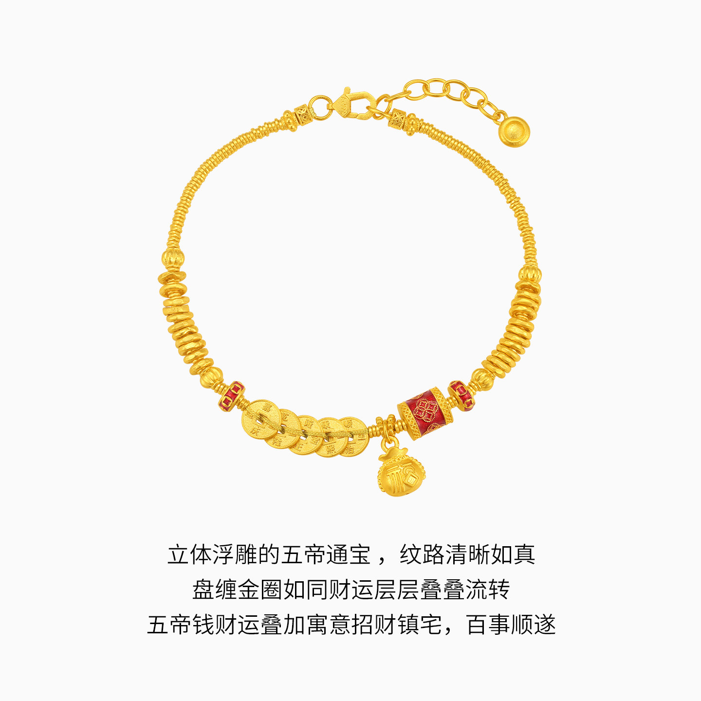 潮宏基臻金珍藏五帝钱币黄金手链足金古法珐琅盘缠金卟纪念礼物