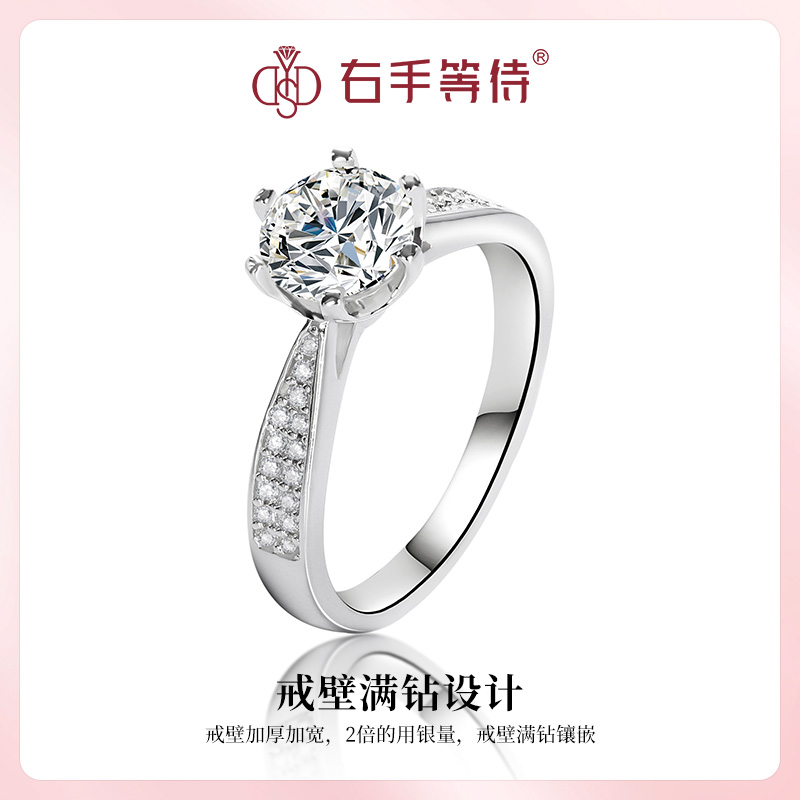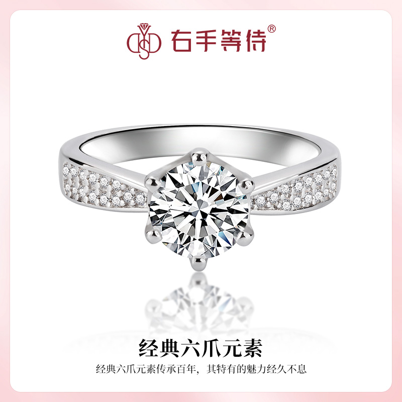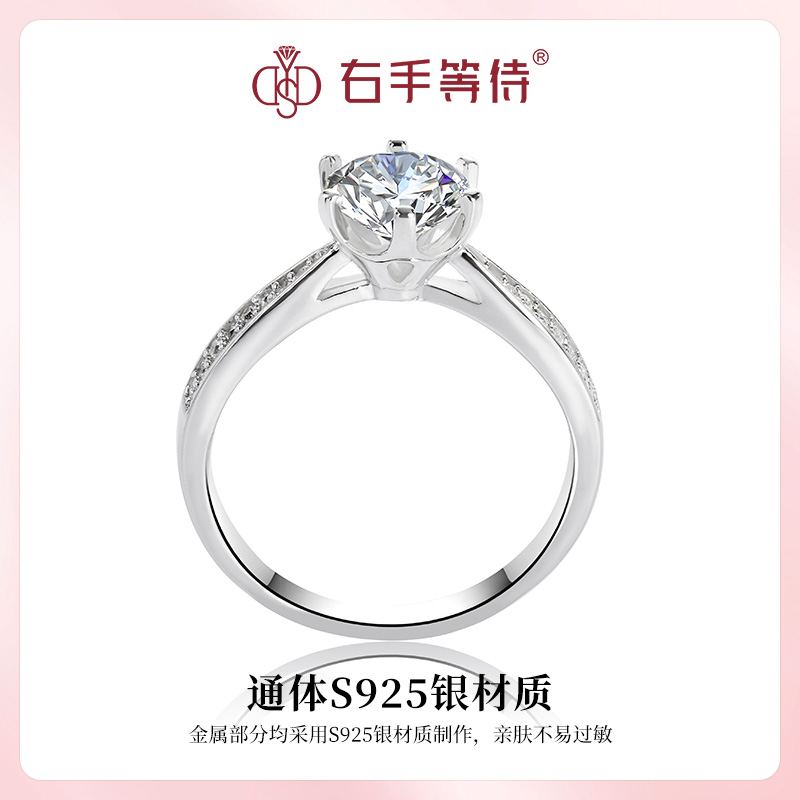 右手等待星光皇后1克拉莫桑石钻戒S925银镀金情侣对戒闭口戒指女