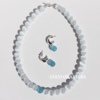 难忘一抹蓝 /清冷天蓝色猫眼石串珠项链透亮白月光ot扣锁骨链耳环