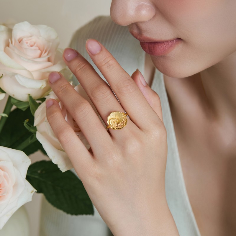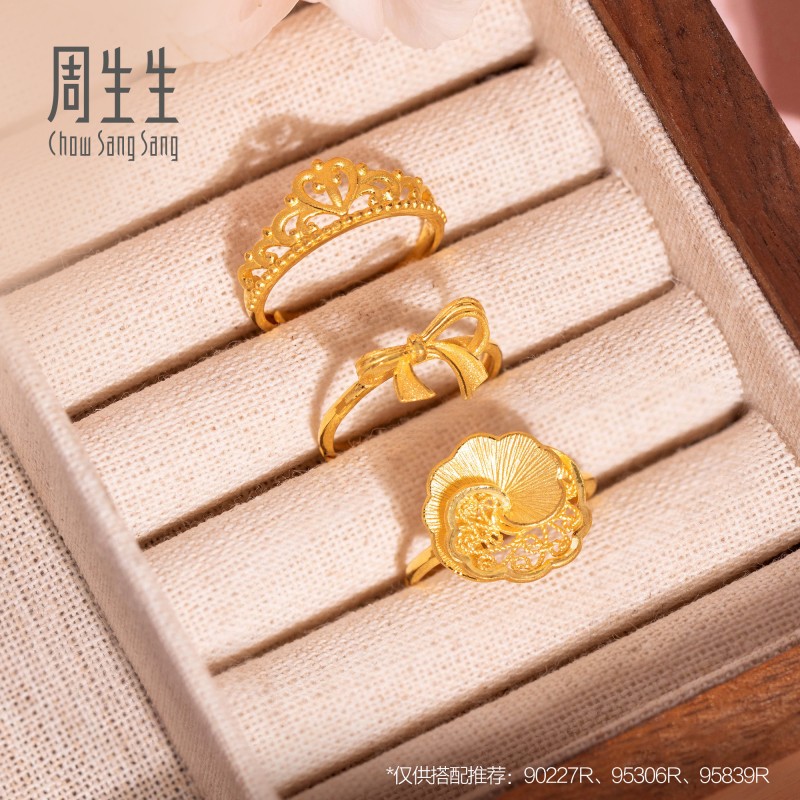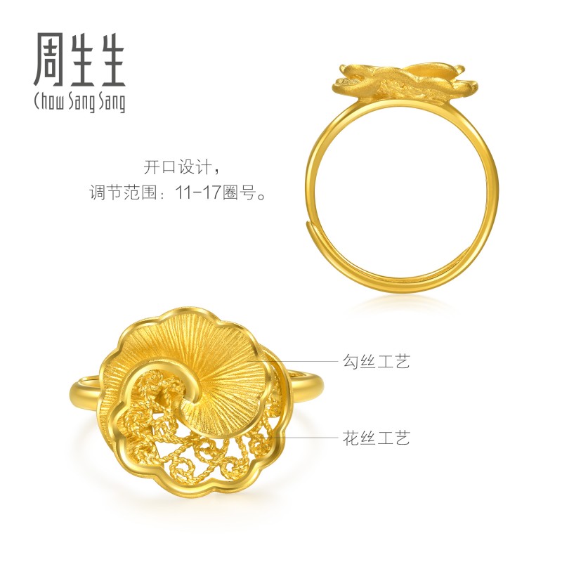 周生生黄金足金生生有囍山茶花戒指婚嫁戒指95839R计价