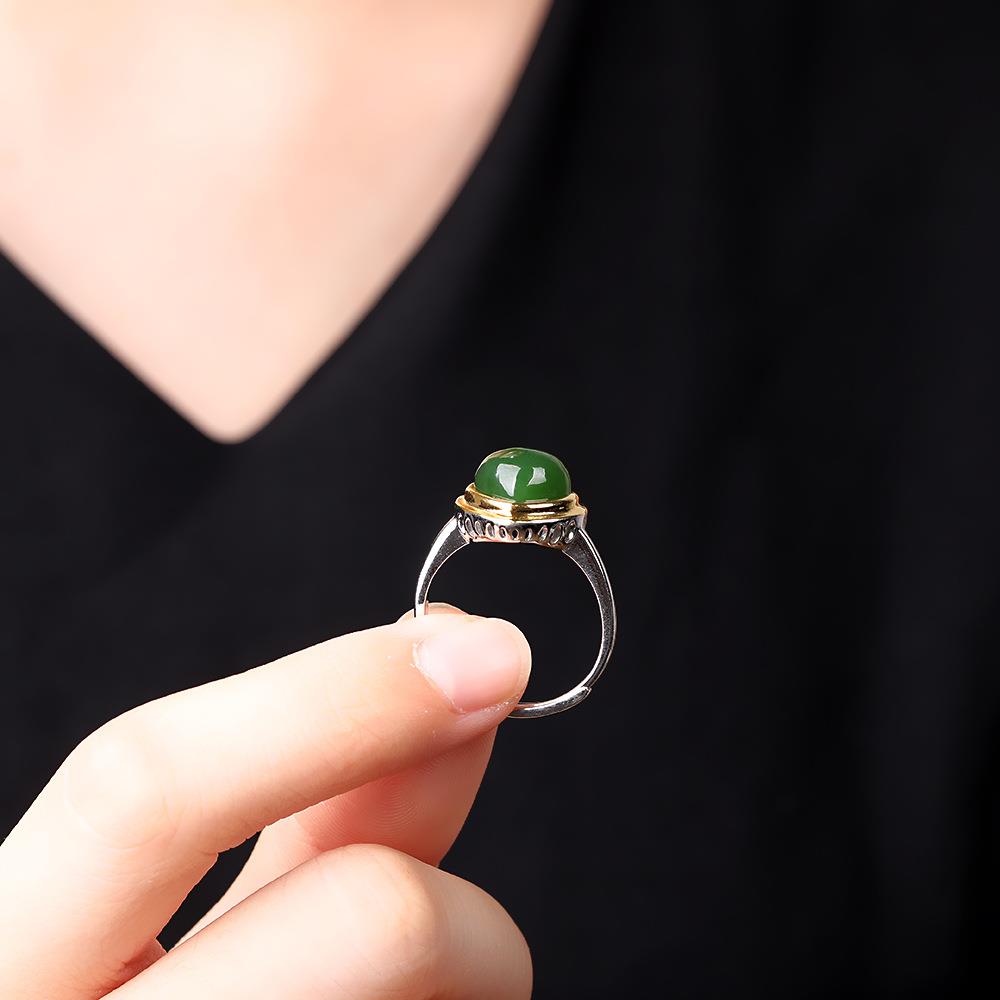 本命年925银镶嵌和田玉碧玉桃心戒指时尚简约开口戒指礼物