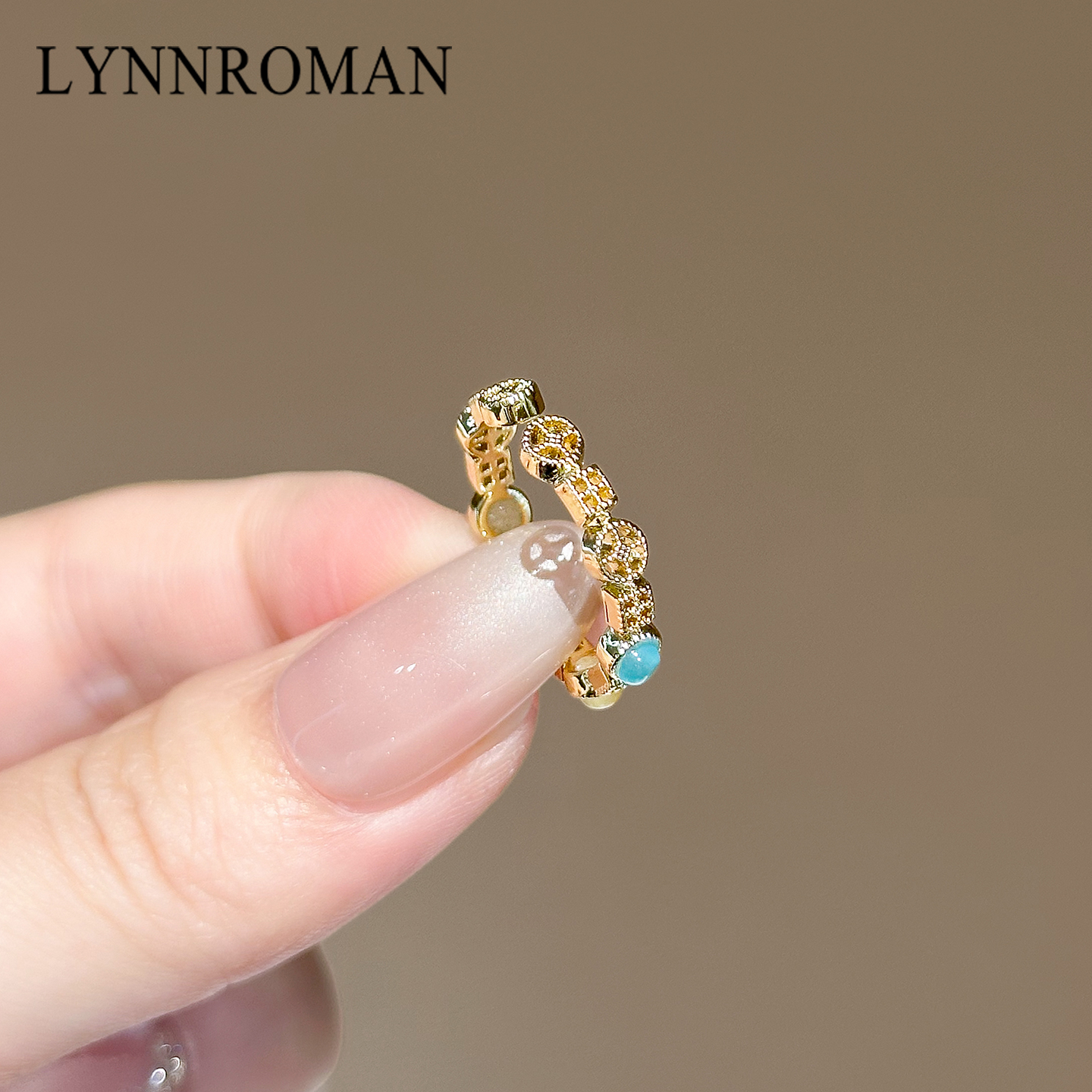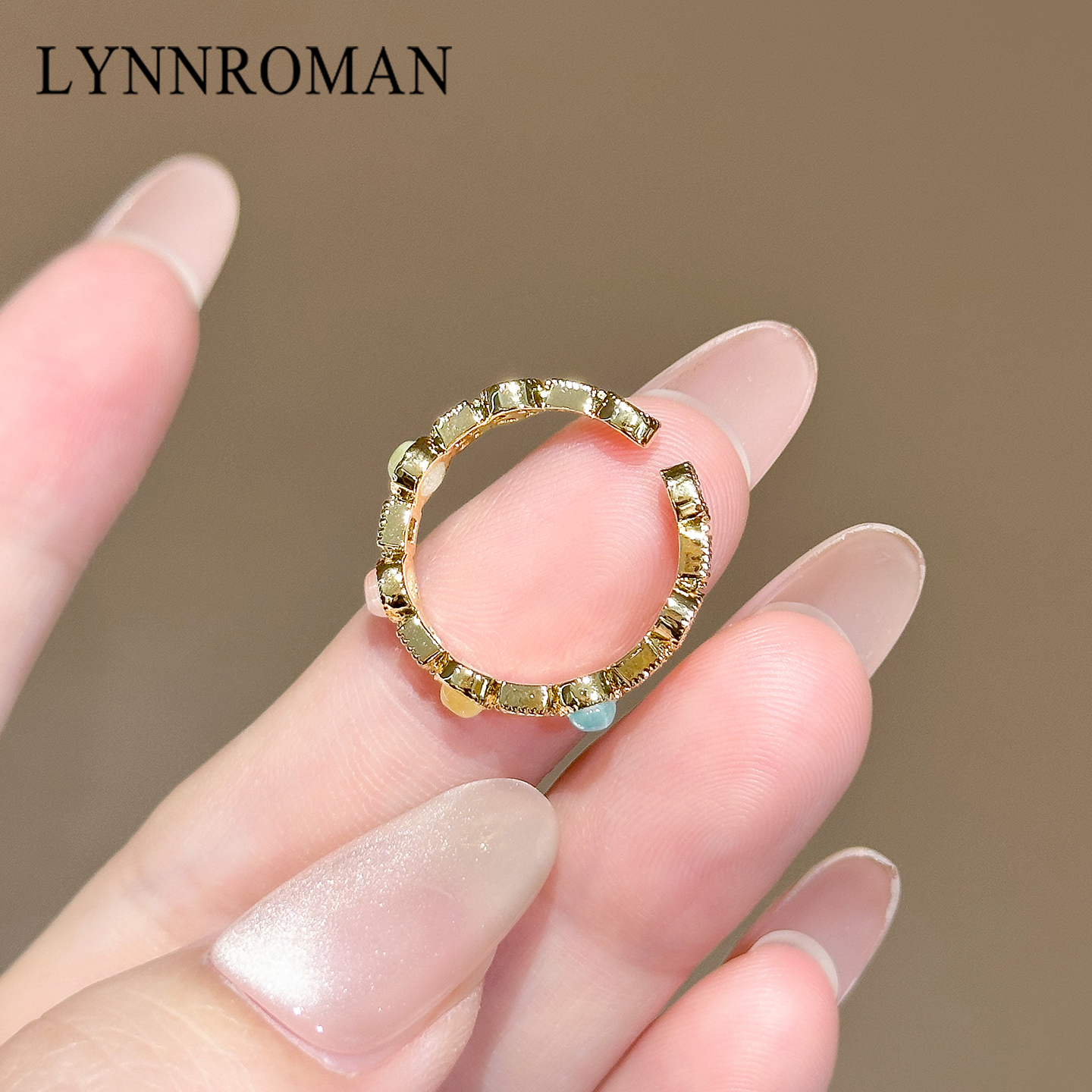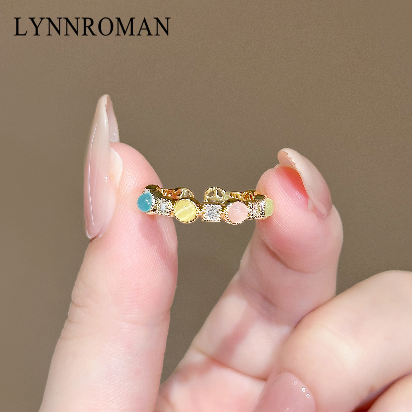 LYNNROMAN猫眼石戒指女款轻奢精致指环高级感小众设计开口食指戒
