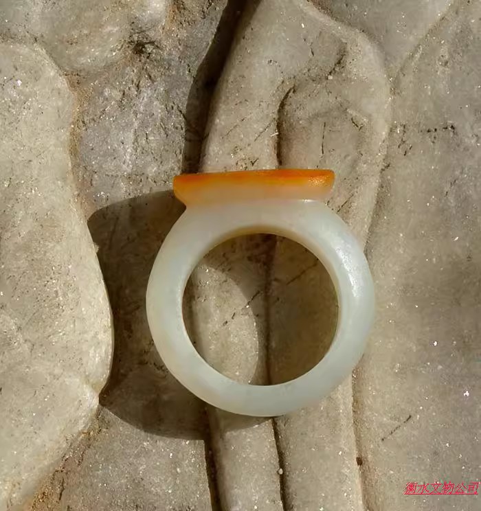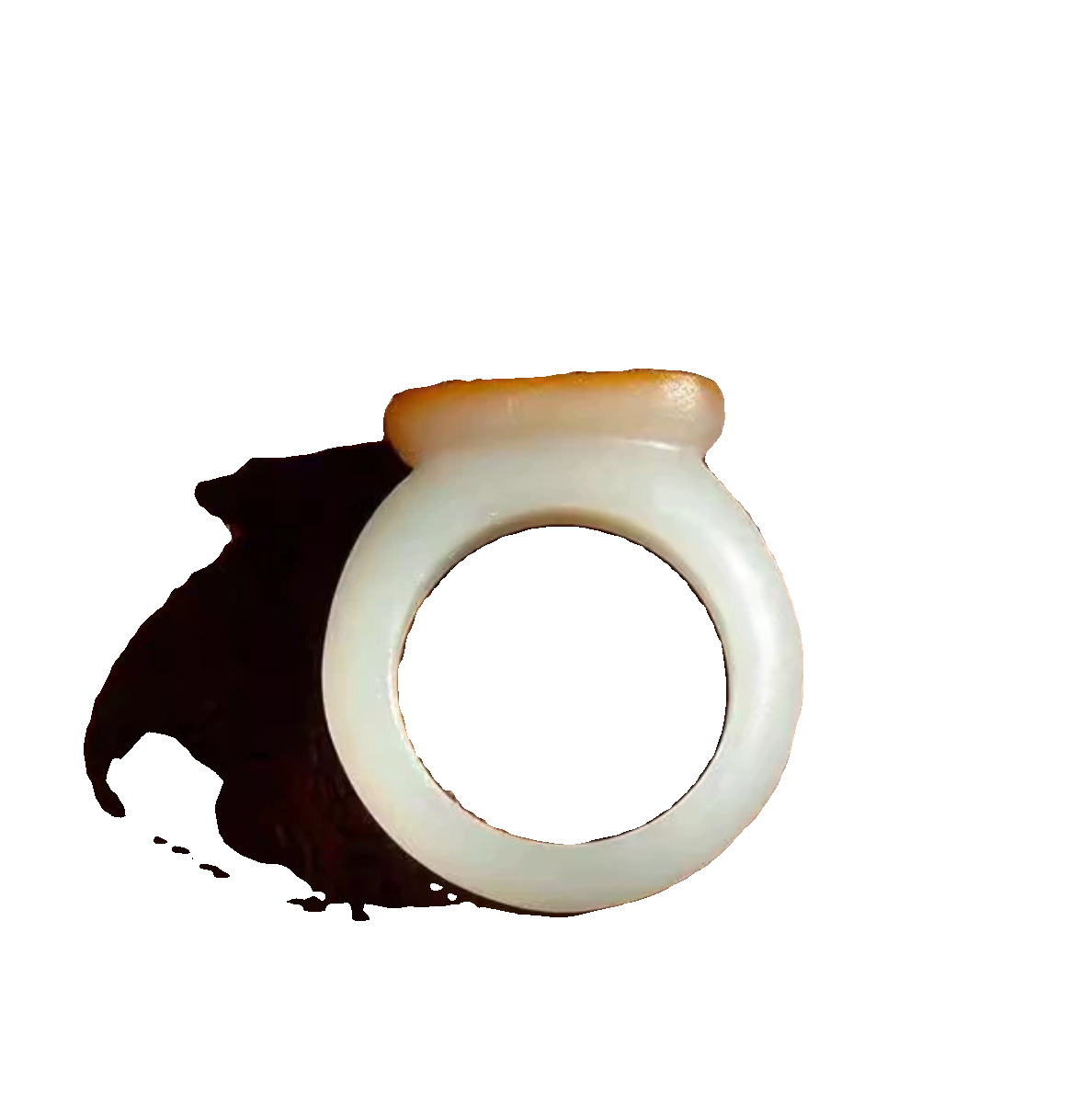 秋=枫1562清代天然新疆和田玉白玉籽料马鞍戒指扳指巧色巧雕证21