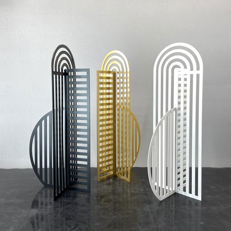简现代黑色属网格风镂空金几何摆ZCM件样板间屏书房约桌面软装饰