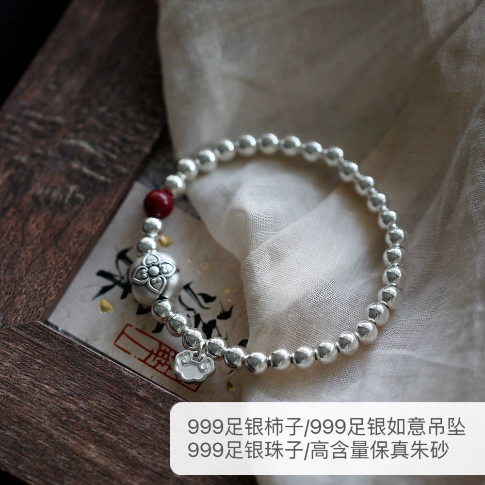 柿柿如意手串 万柿圆满999足银新中式国风串珠纯银手链女生日礼物