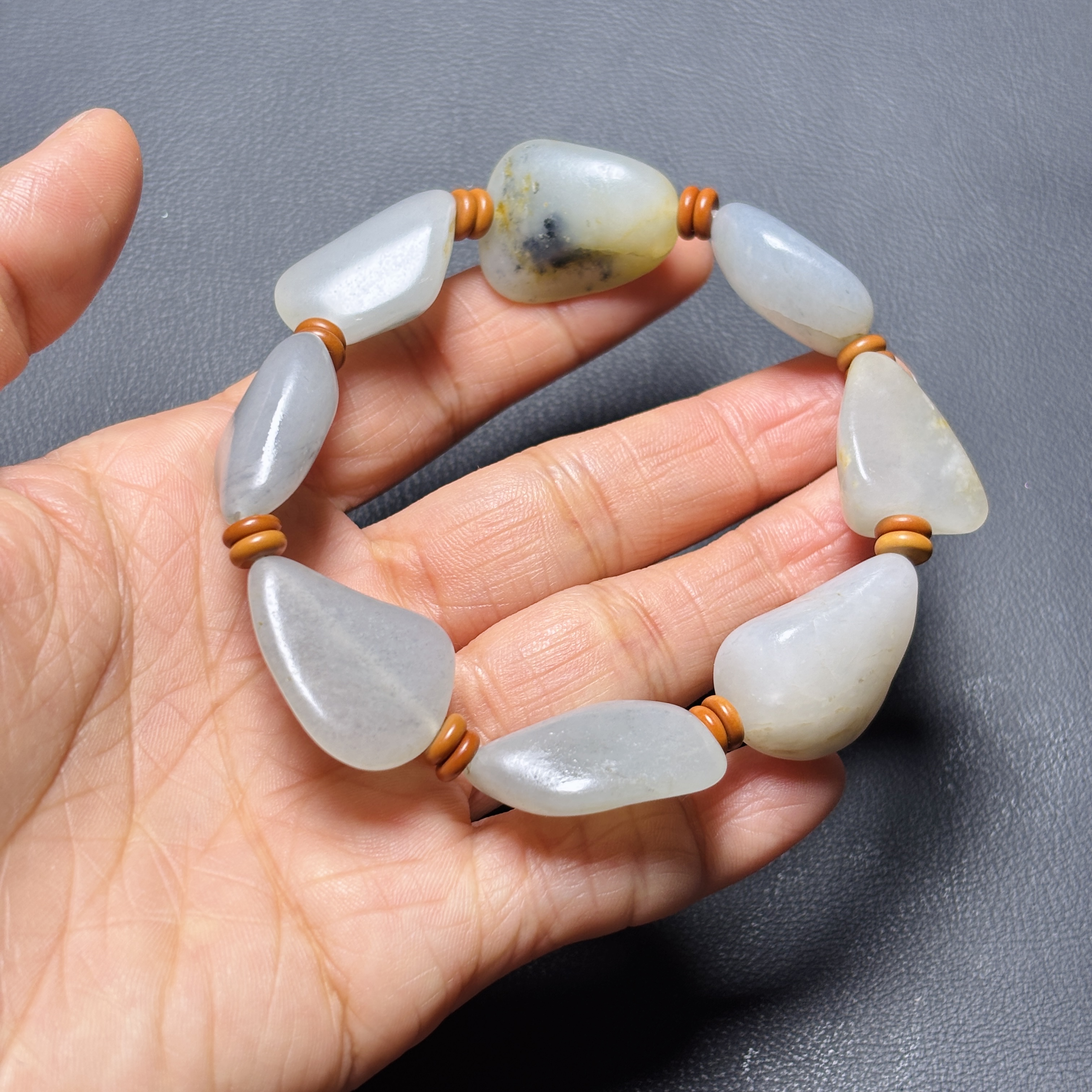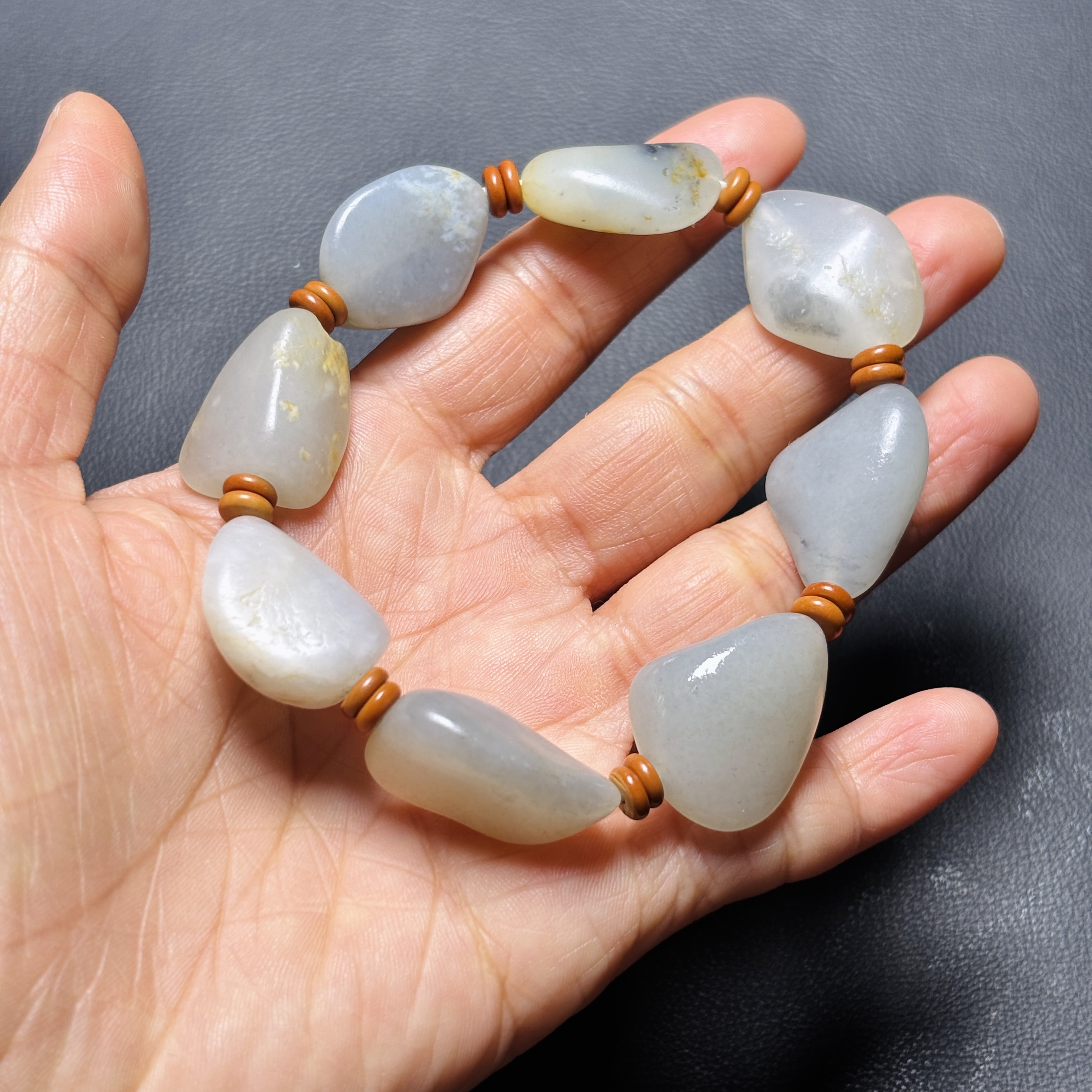 新疆和田玉籽料原石 真皮真籽 油性好 天然和田玉青花手链 新疆发