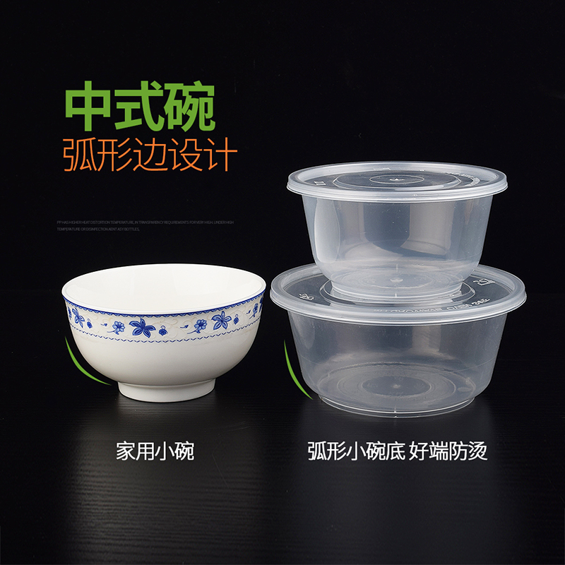 高档圆形一次性快餐盒美式塑料汤碗外卖便当打包盒密封不漏可微波
