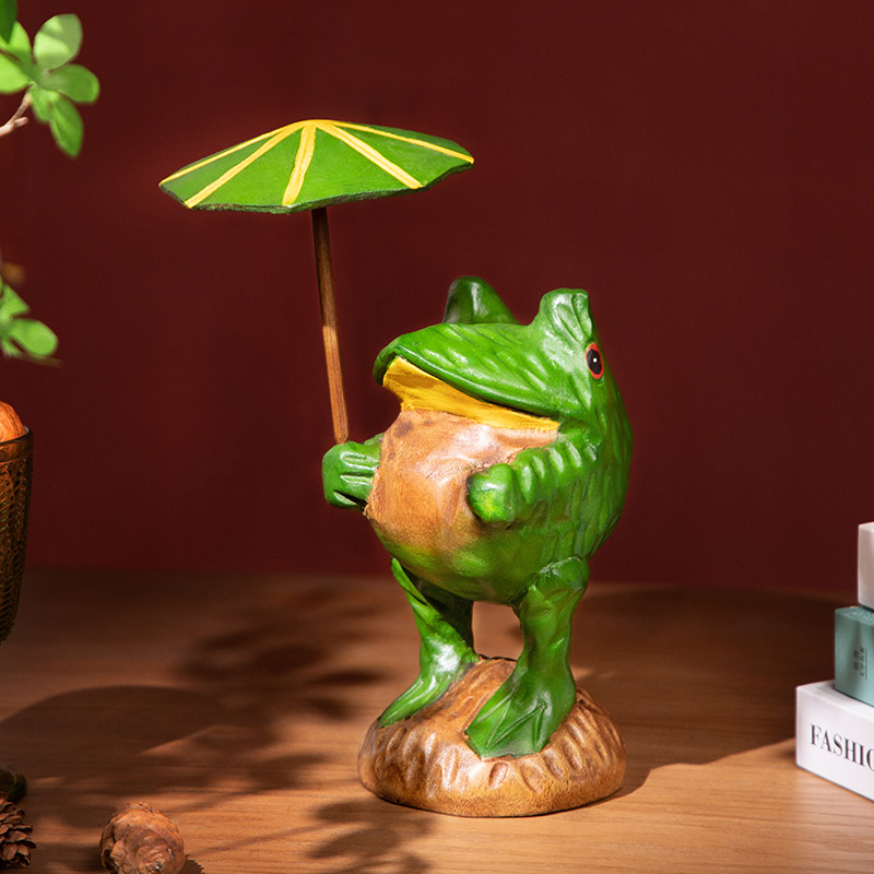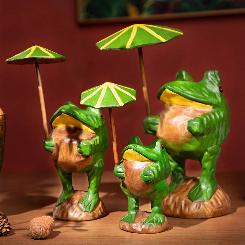 东南亚风全实木青蛙打伞桌面摆件玄关电视柜办公室装饰品客厅创意