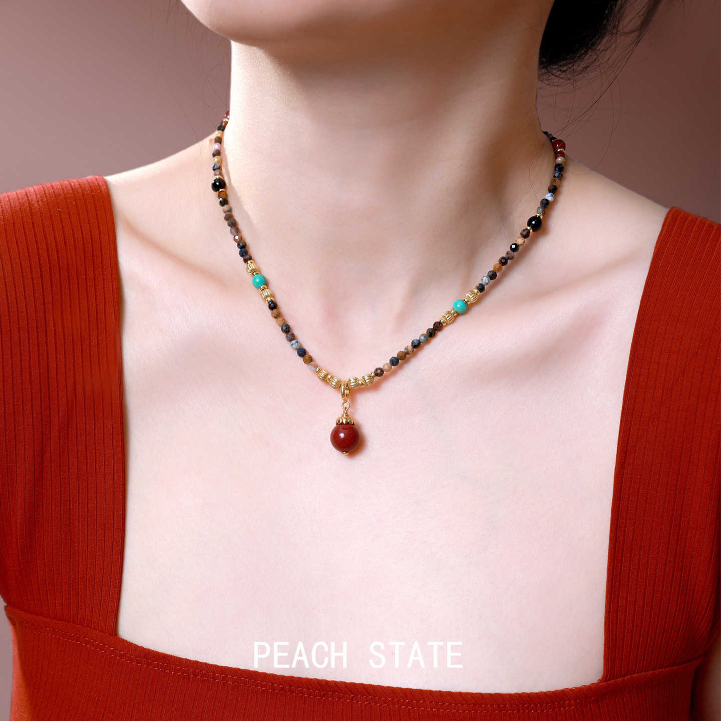 PEACH STATE彼得石玛瑙串珠项链女小众设计高级感吊坠送长辈礼物