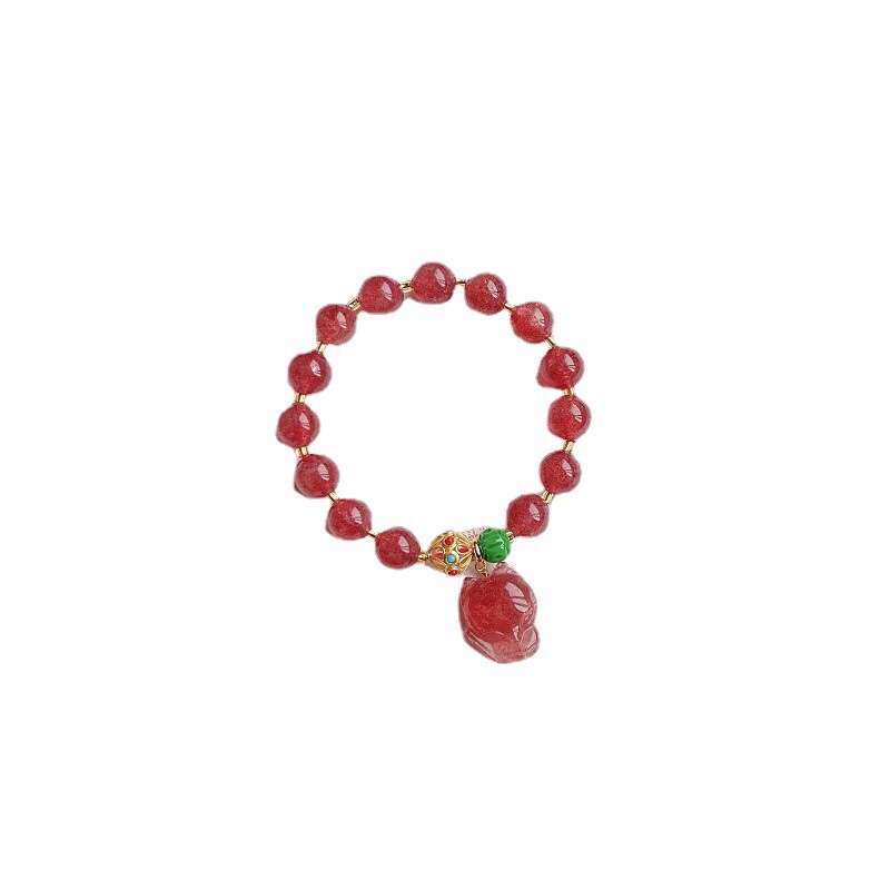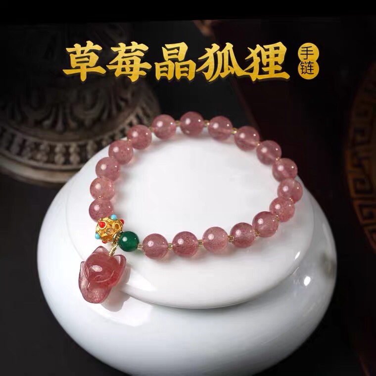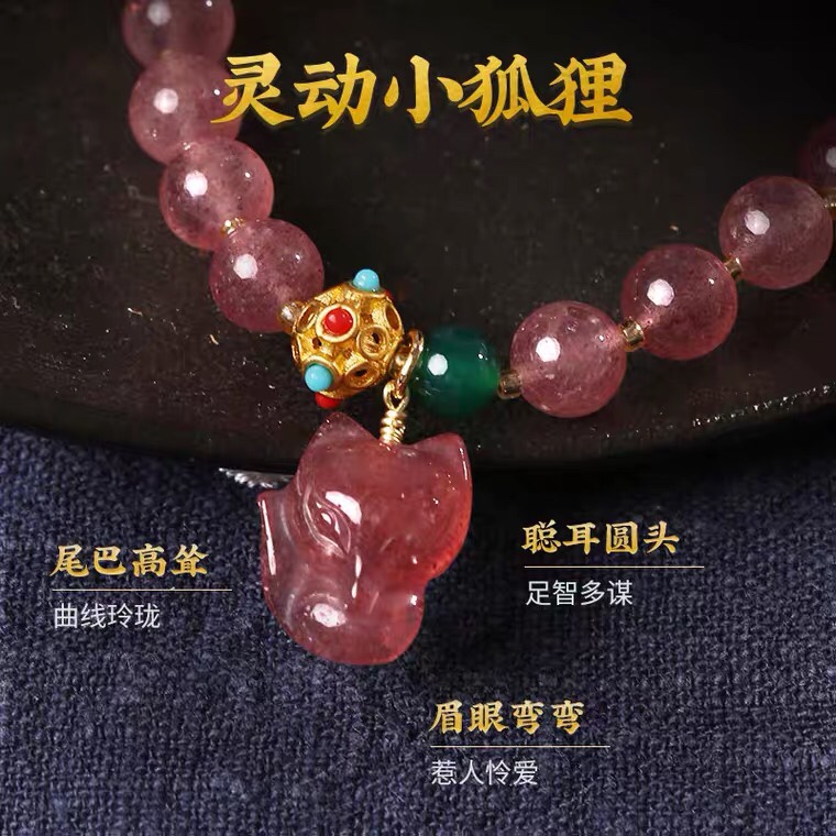 共度饰光天然原矿鸽血红草莓晶手链女简约小狐狸吊坠水晶手串饰品