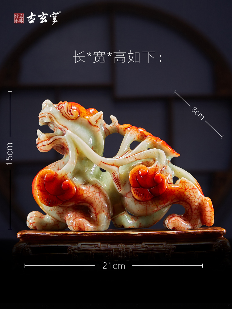 古玄空岫玉20cm貔貅中号家居神兽摆件卧室玉石手工雕刻镜家居