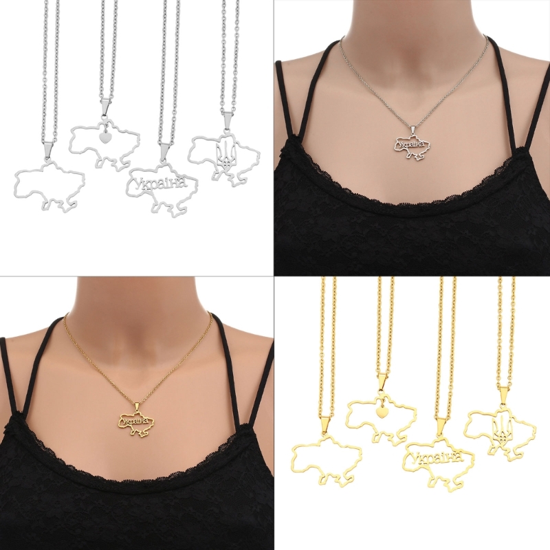 Outline Ukraine Map Pendant Necklace For Women Girls Stainle