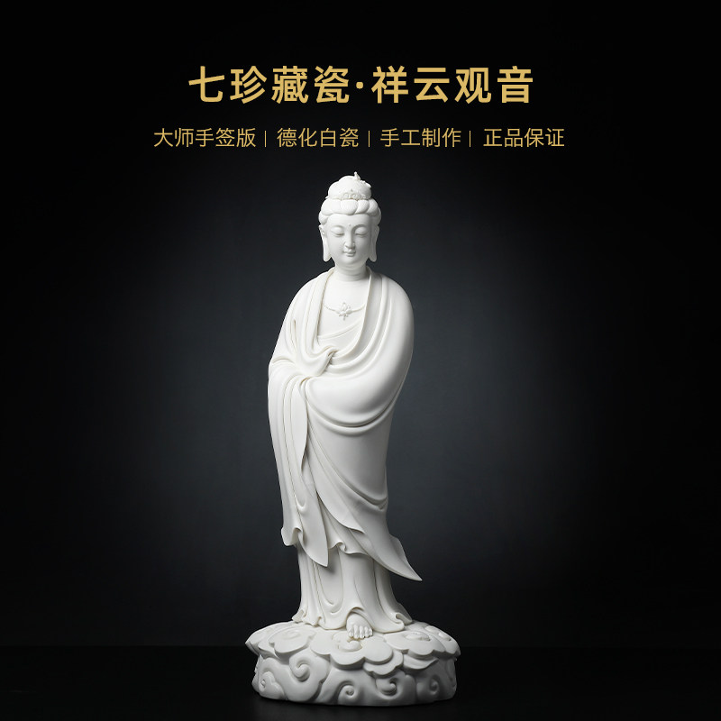 戴玉堂陶瓷《祥云观音佛像》省级大师林建平观世音菩萨像供奉摆件