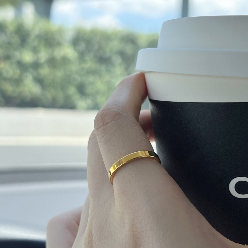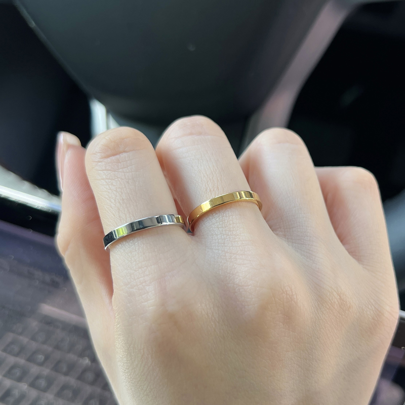 ins冷淡风简约小众光面男女情侣对戒钛钢不掉色金色叠戴素圈戒指