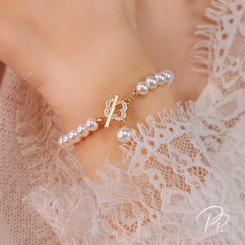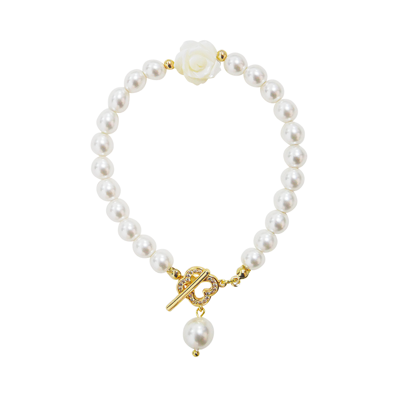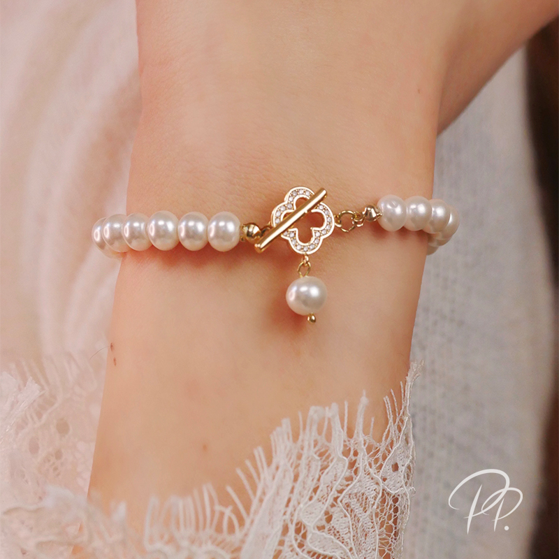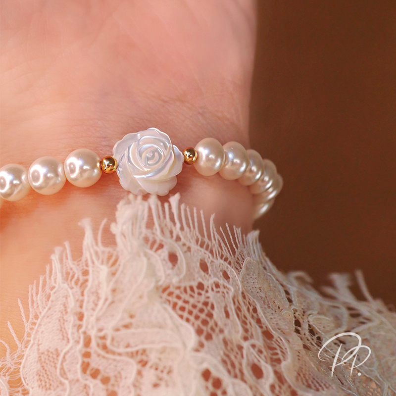 PP饰品 原创设计玫瑰四叶草法式珍珠手链女ins小众轻奢精致手串