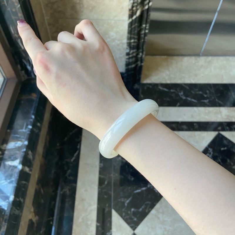 日本品质天然新疆和田玉手镯和田白玉手镯正圈女款晴水镯子少女叮