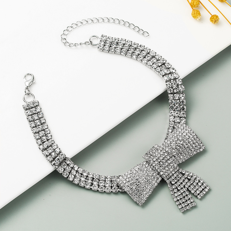 欧美时尚颈链chocker 高档气质合金镶钻水钻满钻蝴蝶结吊坠项链女