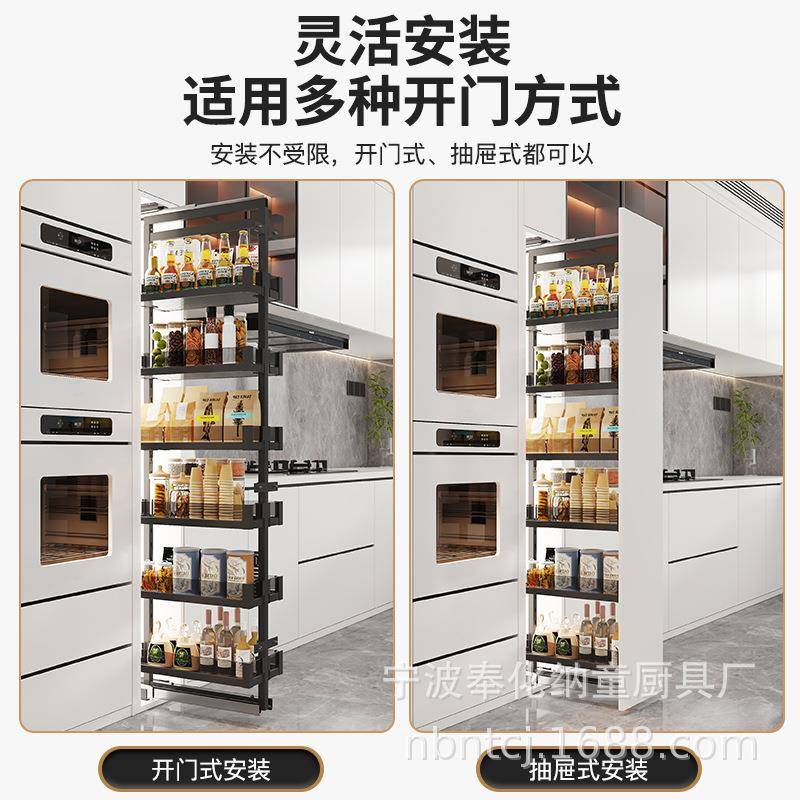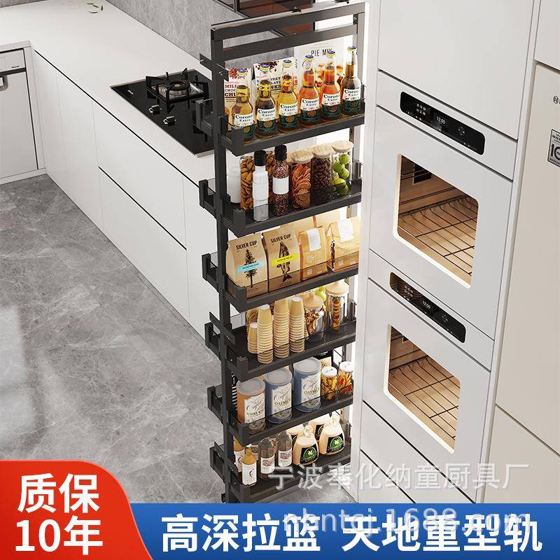 厨房高柜拉篮冰箱侧边夹缝极窄橱柜多层可调调味收纳置物架重型轨