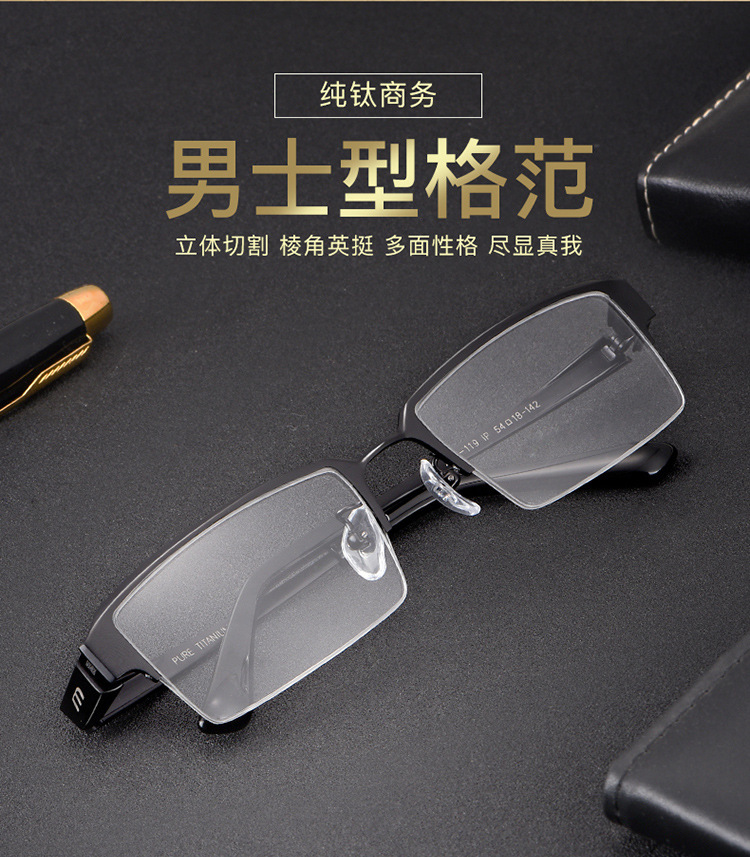 纯钛眼镜框男半框近视眼镜商务眼睛框镜架男超轻黑色眼镜架119