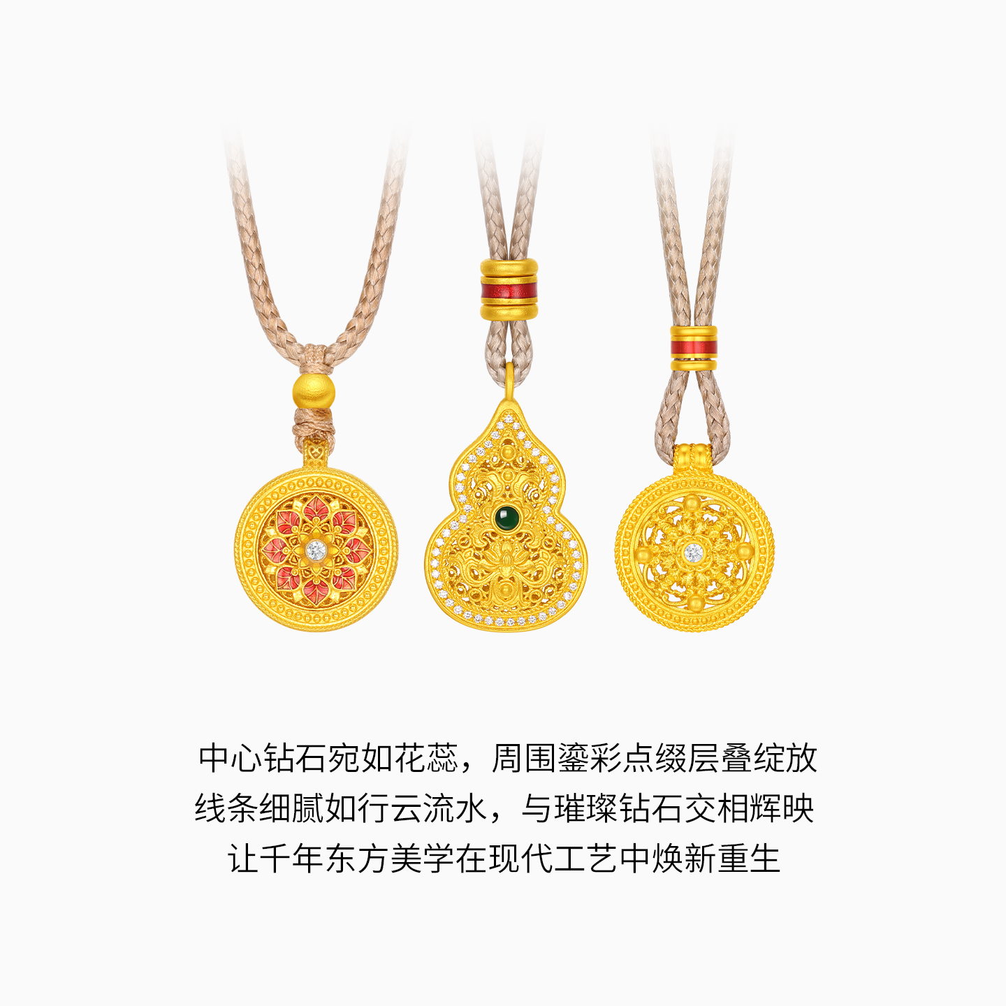 潮宏基臻金臻钻黄金钻石项链宝相花葫芦足金套链古法礼物高级感