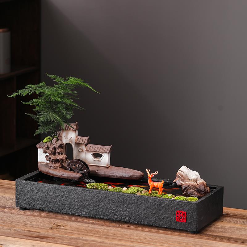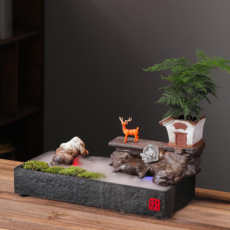 创意流水生财桌面装饰鱼缸摆件循环水招财客厅玄关办公室开业礼品