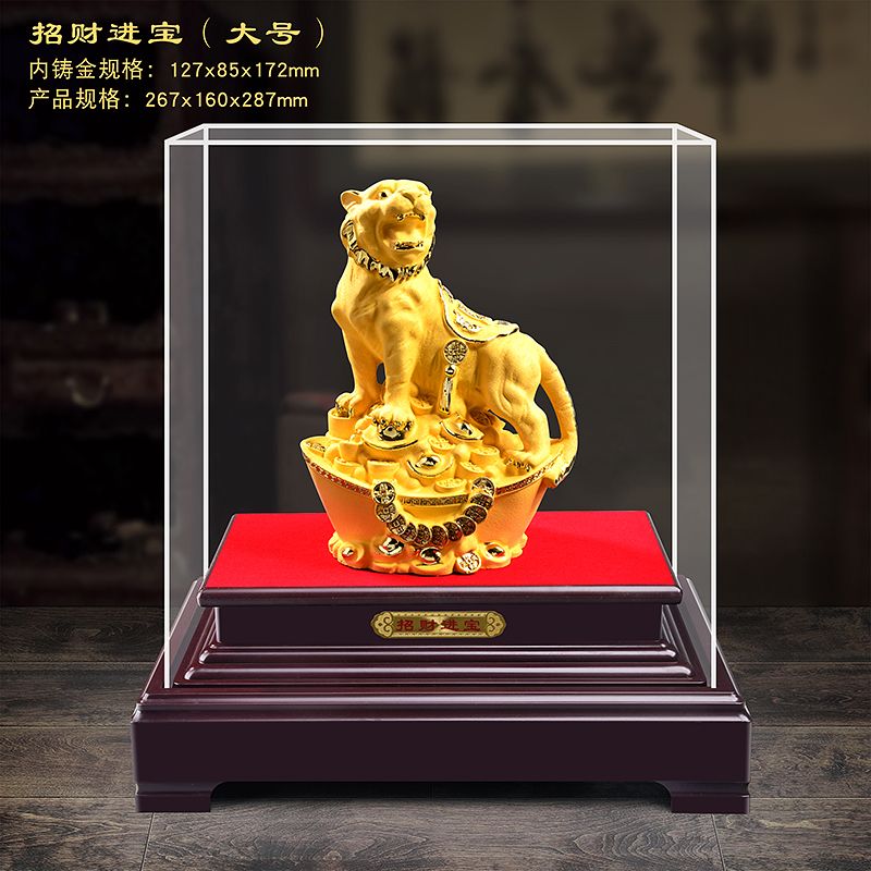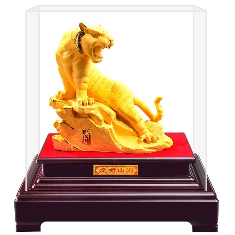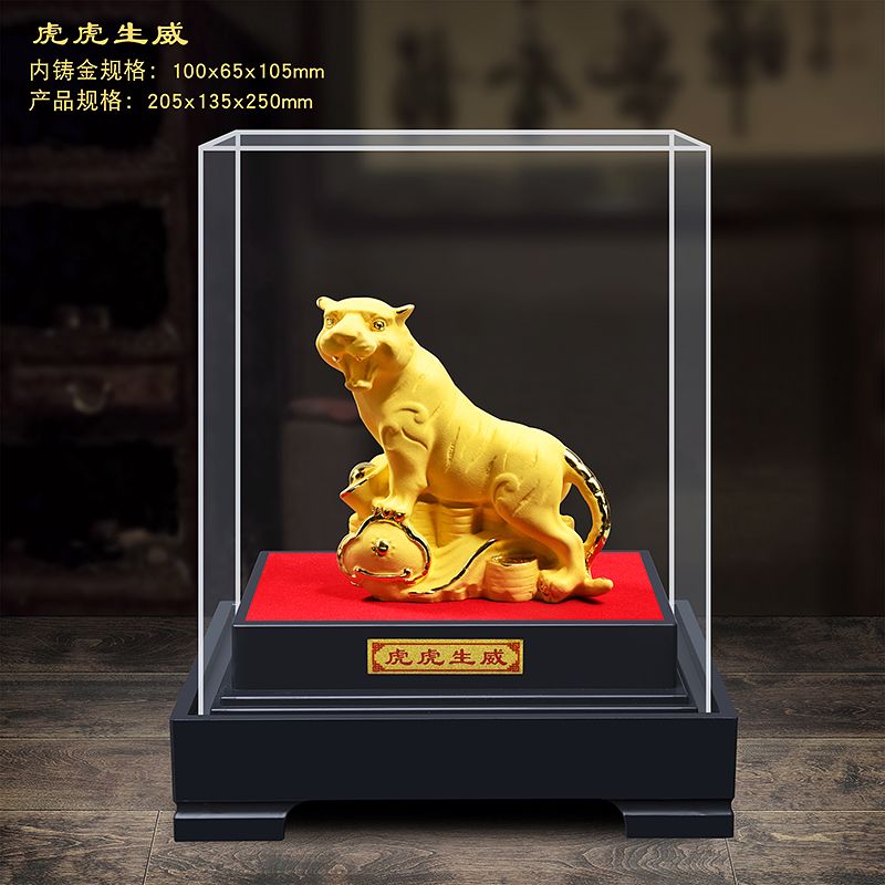 虎啸山河迷你绒沙金礼物十二生肖树脂摆件高端客厅办公室商务礼品
