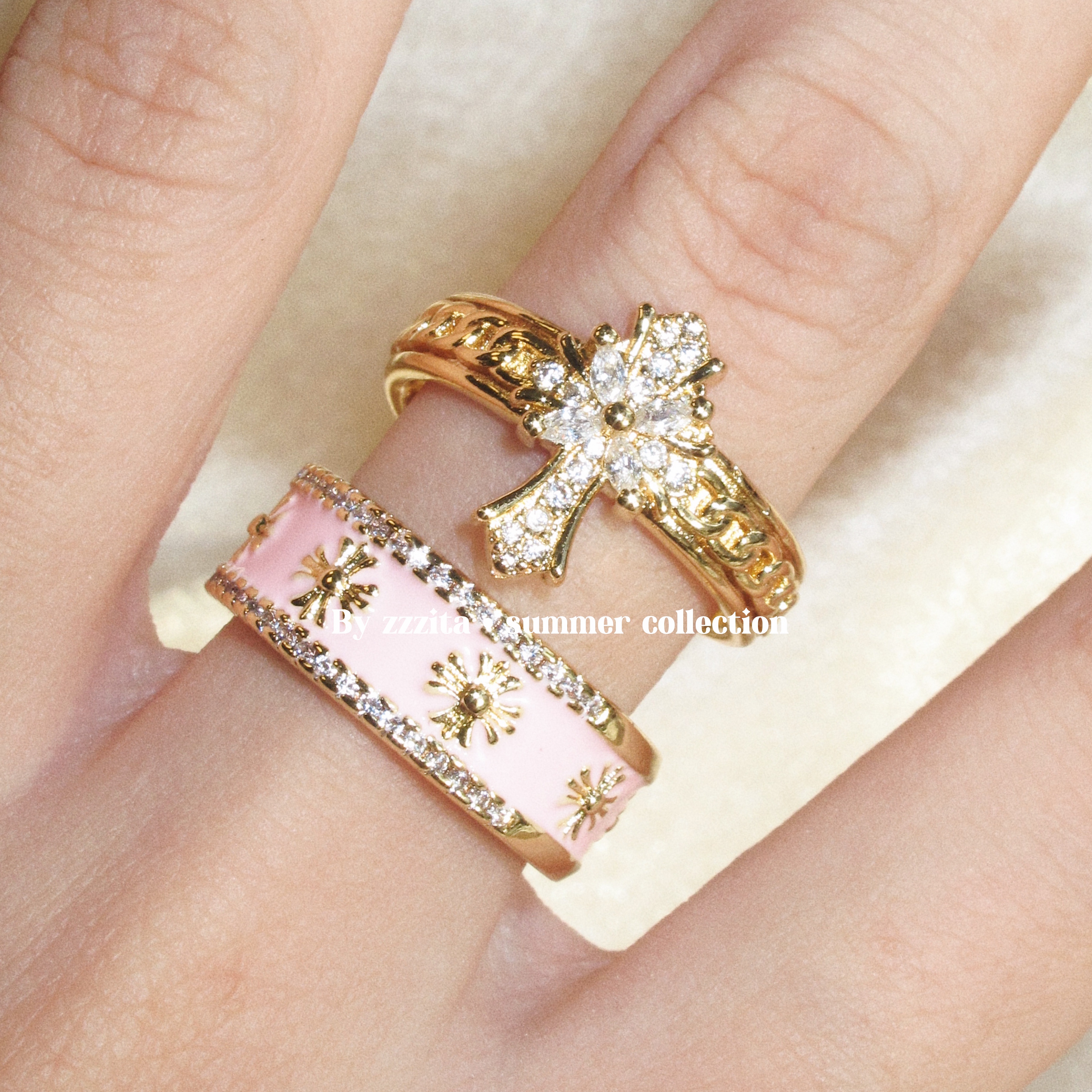 ZZZITA 亚裔甜心·Pinky Cross~美式辣妹粉色闪钻十字架戒指套装