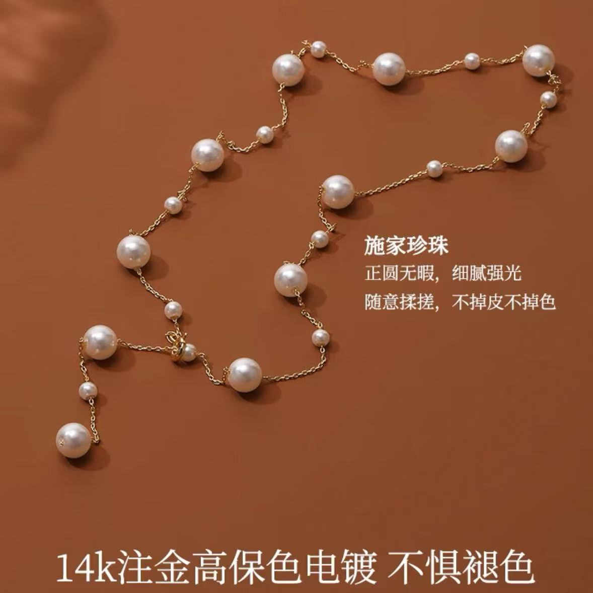 925银精致满天星流苏珍珠项链轻奢小众高级感多种戴法