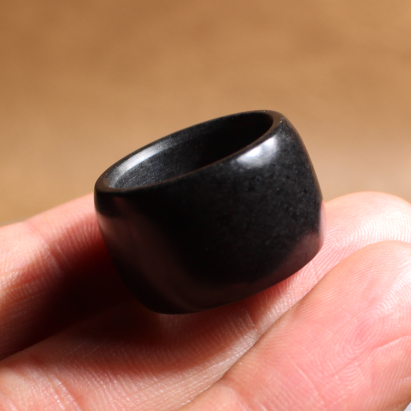 新疆和田玉白玉底墨玉籽料18mm戒指扳指K
