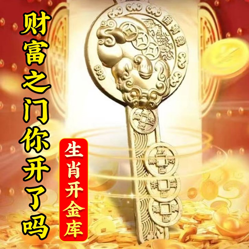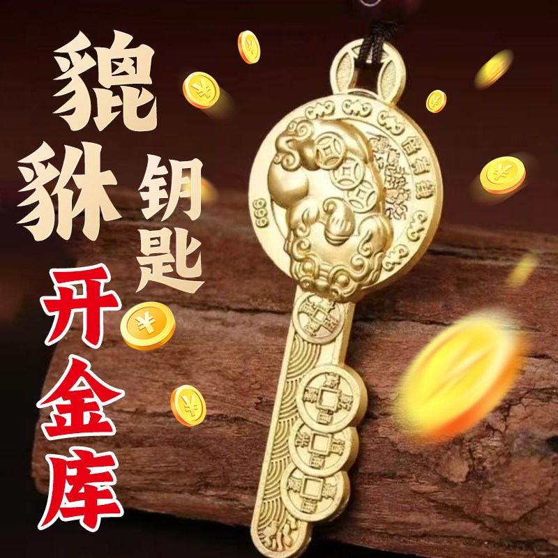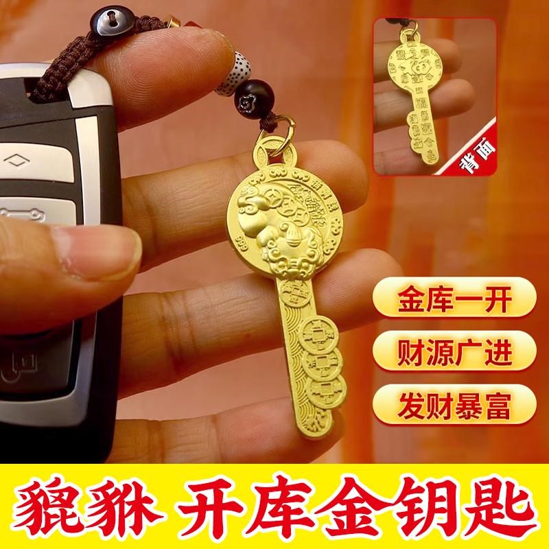 貔貅金钥匙黄铜百福开金库金钥匙男女士汽车挂饰钥匙扣创意小挂件