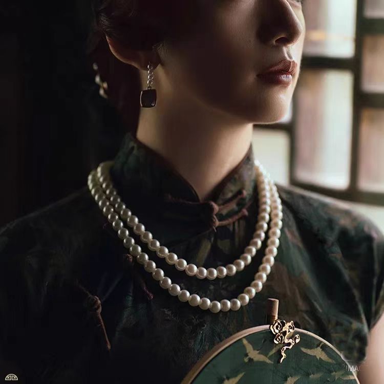 复古新中式珍珠项链女优雅送妈妈婆婆锁骨链双层简约古风旗袍颈链
